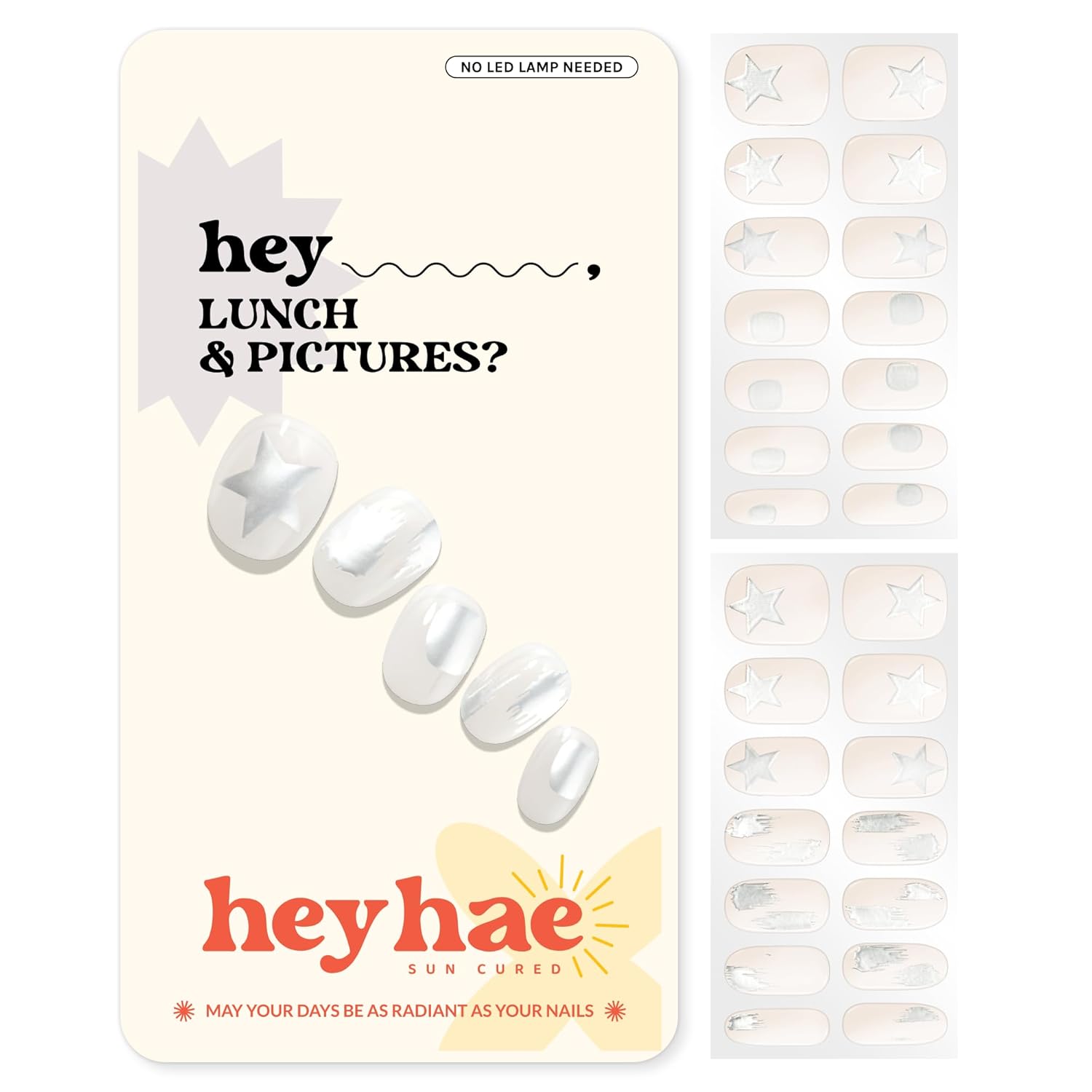 Semi Cured Gel Nail Strips | No LED Lamp Needed | Glitter, White, Spring | Easy Apply & Remove, Salon Quality |Includes 28 Strips, 1 Prep Pads, Nail File & Wooden stick - Hey, Lunch & Pictures?