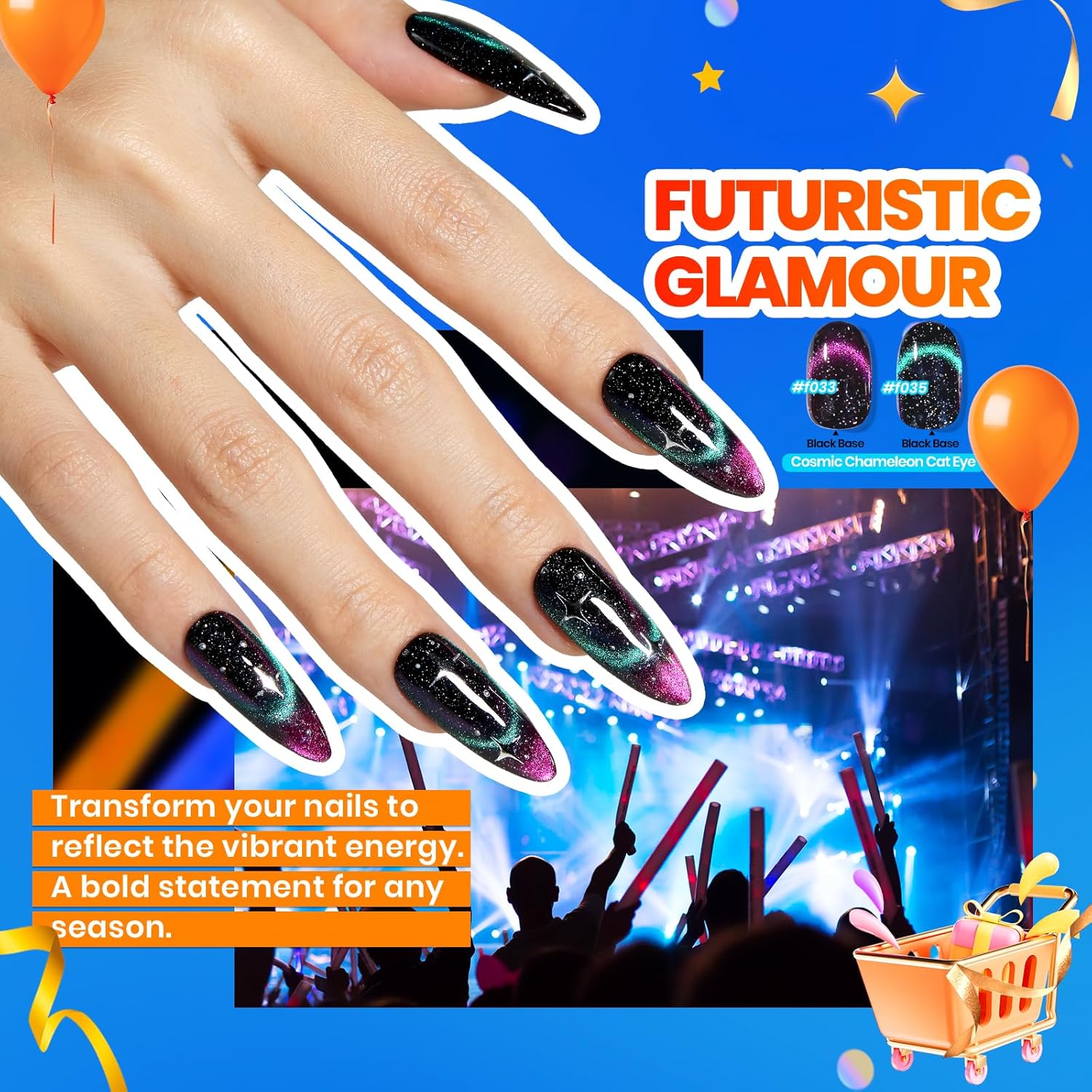 - Amazing Magnet Effects: All you need is a tiny magnet, which is included in the set,to play the fun with cat eye effect.Here are so many effects that can be created with this set. Easy and fast but still maintaining the professionalism of the product, keeping up with the fashion of the moment. Go enjoy the wonderful holiday time with your eye-catching nails!