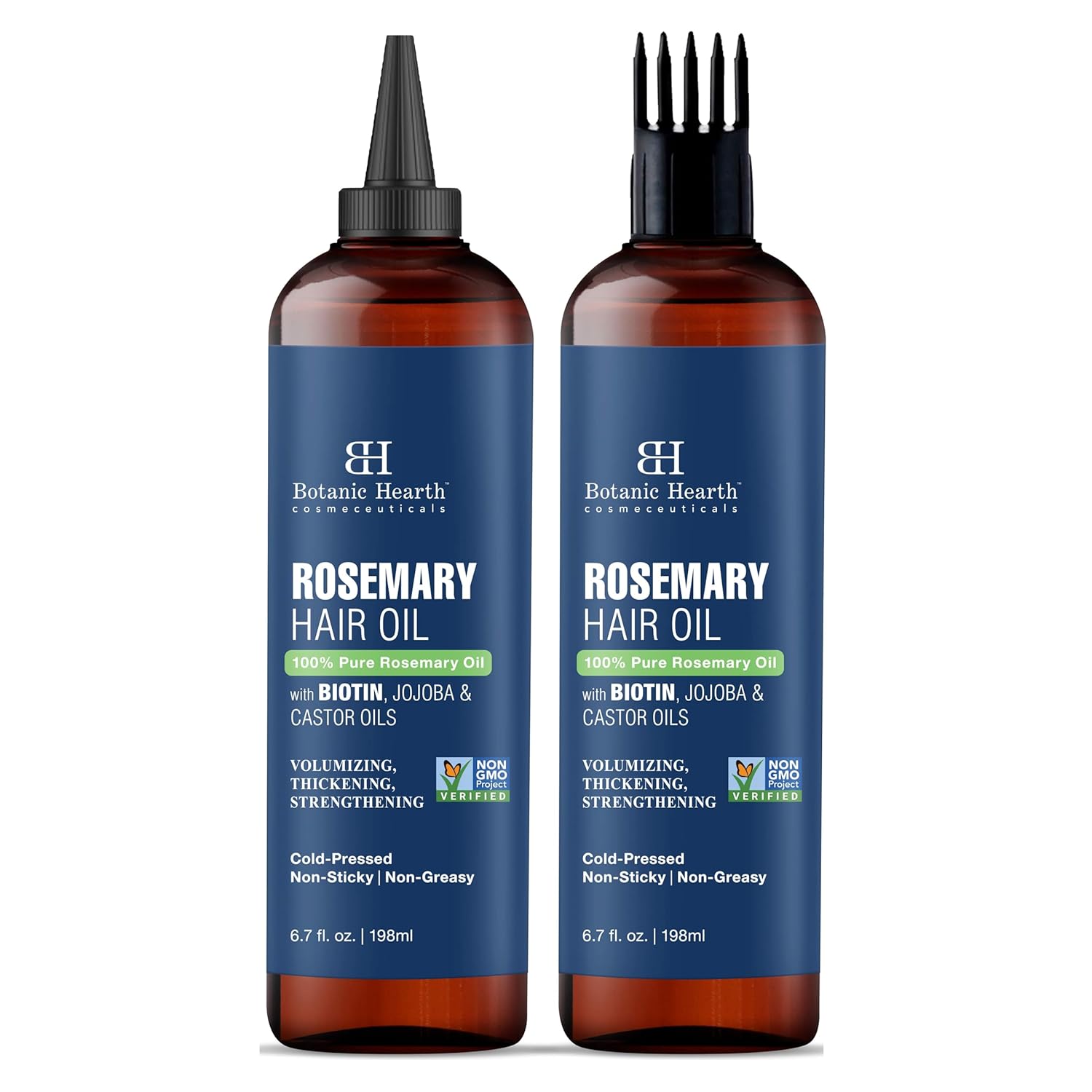 Botanic Hearth 100% Pure Rosemary Oil For Hair Growth (6.7 fl oz-Pack fo 2)| Infused with Biotin, Jojoba & Castor Oil | Hair Oil Repairs Dry Damaged Hair, Strengthening, Healthier Hair- Hair Tonic