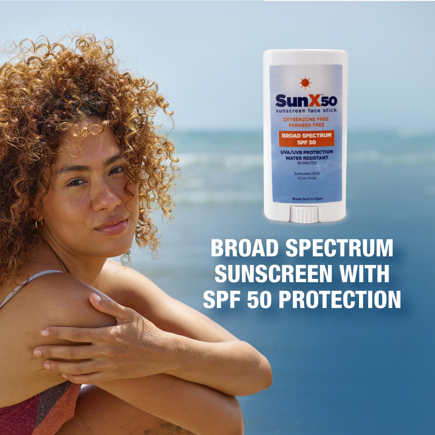 - TRAVEL READY - Compact and travel-friendly, our face stick sunscreen fits perfectly in your purse or backpack. Sun X 50 SPF stick also provides a mess-free application; just swipe and go, keeping your hands clean and your skin protected with ease