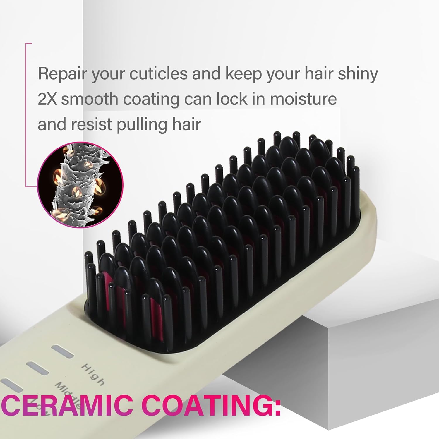 Cordless Hot Hair Brush Straightener Heat Pressing Combs Ceramic Electric Straightening Comb, Anti Burn for Natural Black Hair Beard Wigs Holiday Gifts - Purple (2600mA)