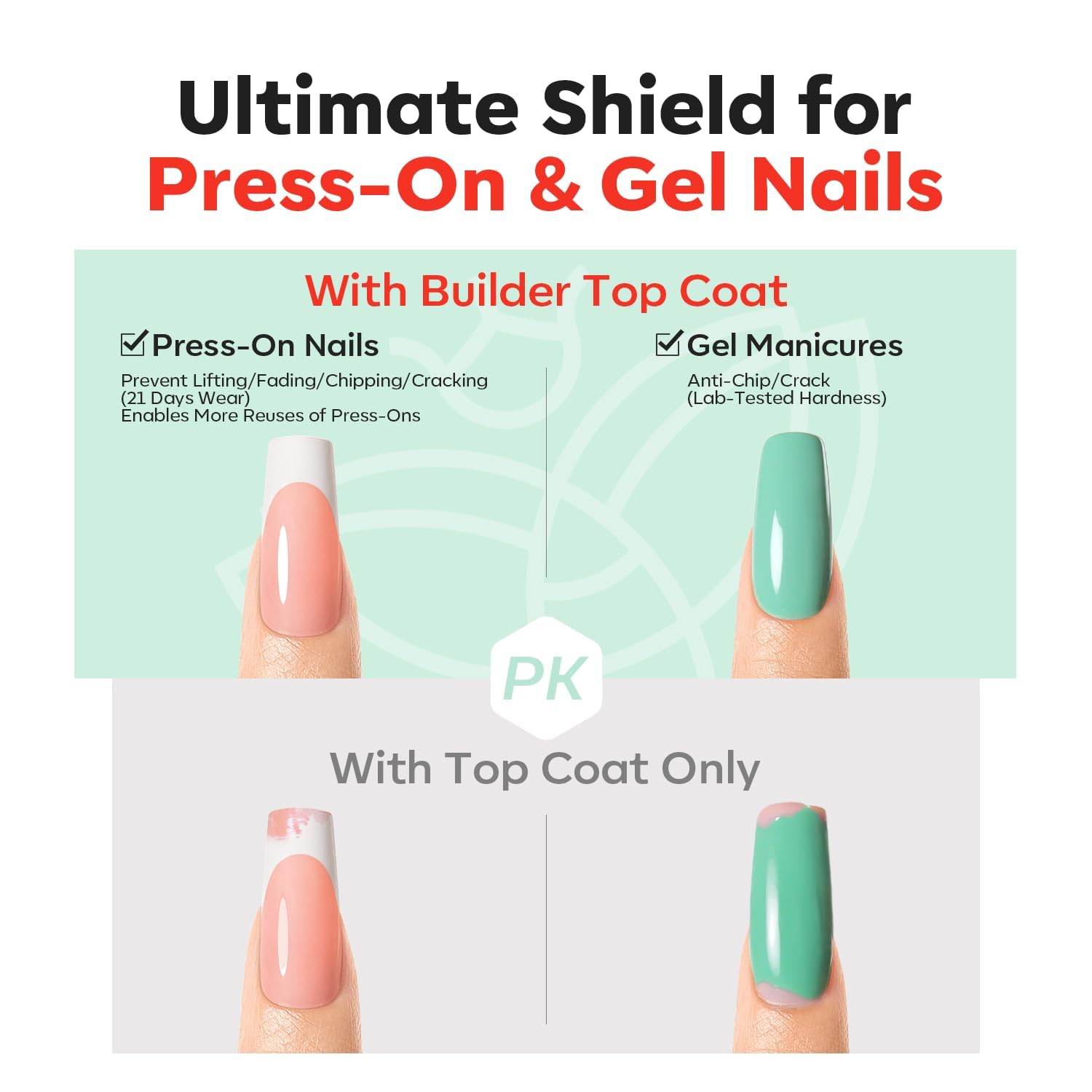 - 【Quick & Easy Application】High self-leveling formula along with built-in brush makes it easy to spread, help you create thickness or add strength to the nail you want, and ensure a smooth and natural nail foundation layer with impeccable shine