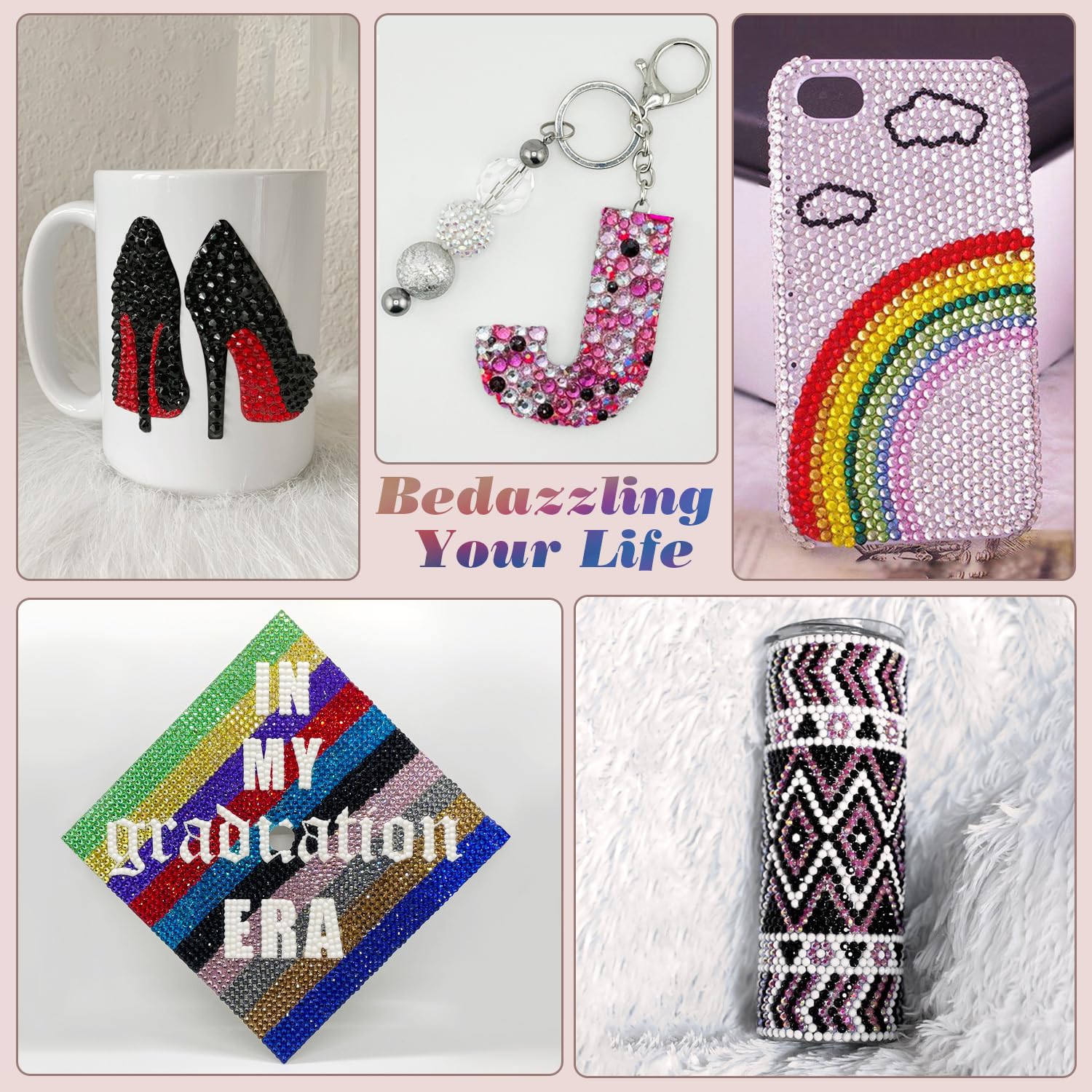 - ✨Great Amounts of Gems -- The bedazzling kit of resin rhinestones are in 3/4/5mm (about 3500pcs). The different sizes and abundant amount of resin gemstones not only enables you to ornament many little stuff, but can also satisfy your need to pave large area designs such as diamond paintings or cups.