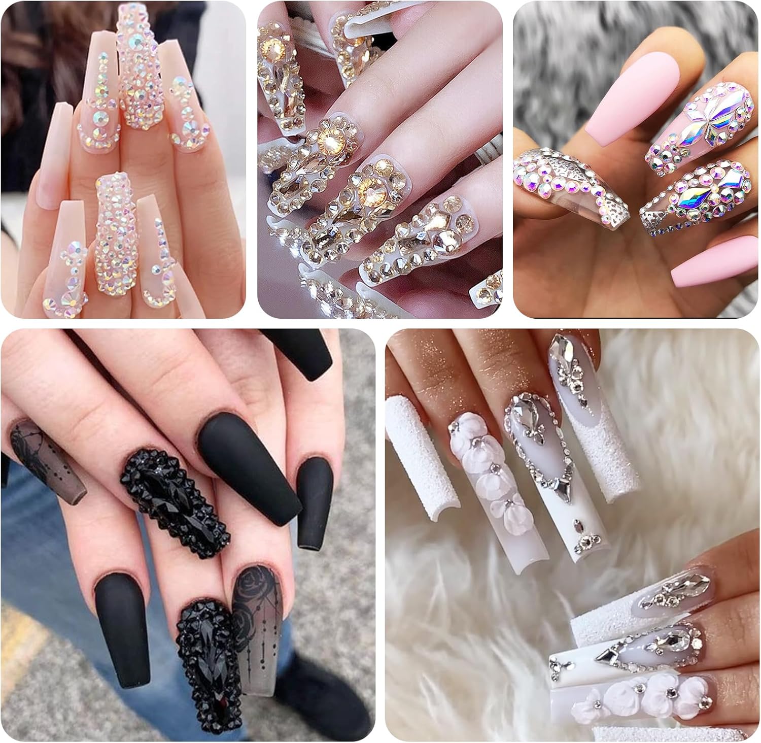 - ๐บ High-Quality Nail Decorations Set: The special-shaped 3D diamond rhinestones are made of K9 glass, with advanced rhinestone cutting, shine under the illumunation of lights. The round flatback rhinestones are made of crystal glass too. These are very affordable so you do not have to be worried about breaking the bank to purchase a large amount of glass rhinestones for nail art.