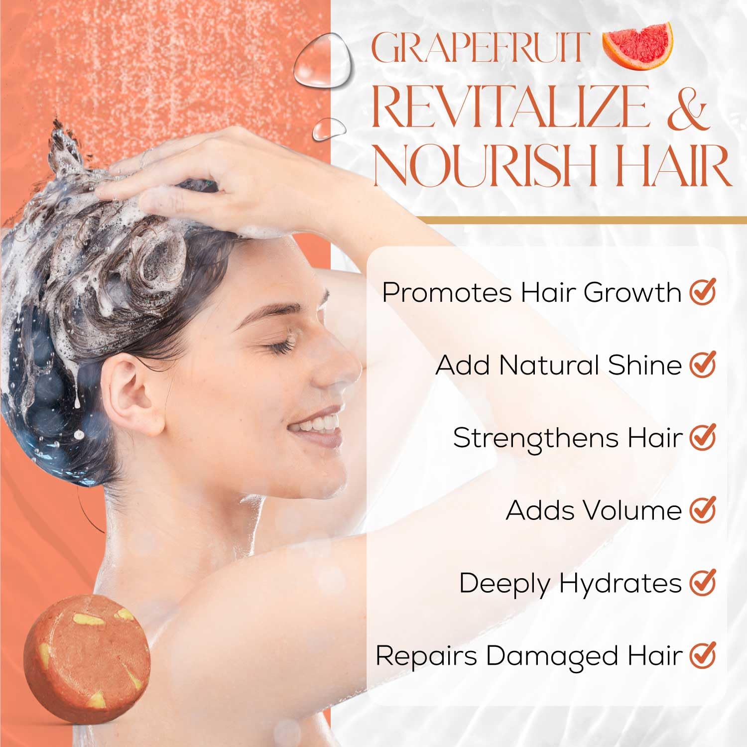 - Aromatherapy For Your Hair: Immerse yourself in a spa-like experience at home with our solid shampoo bar, which is infused with all-natural essential oils for a discreet and refreshing aroma. Discover the calming scents of rosemary, grapefruit, and eucalyptus, and find a hair growth shampoo bar that leaves your hair feeling fresh, and delicately scented.