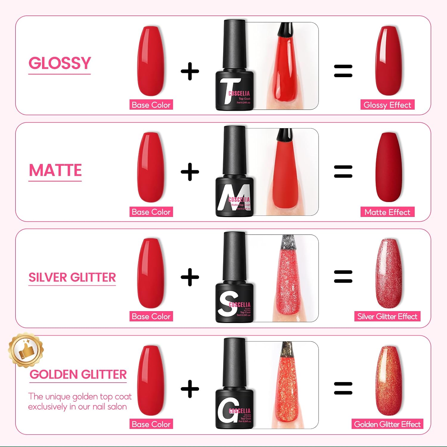 COSCELIA 57pcs Gel Nail Polish Kit with U V light Starter Kit 40 Colors Fall Gel Polish Set 5pcs Top and Base Coat Glossy Matte Glitter Beautiful Nail Stickers Gel Manicure Kit DIY Gifts for Women