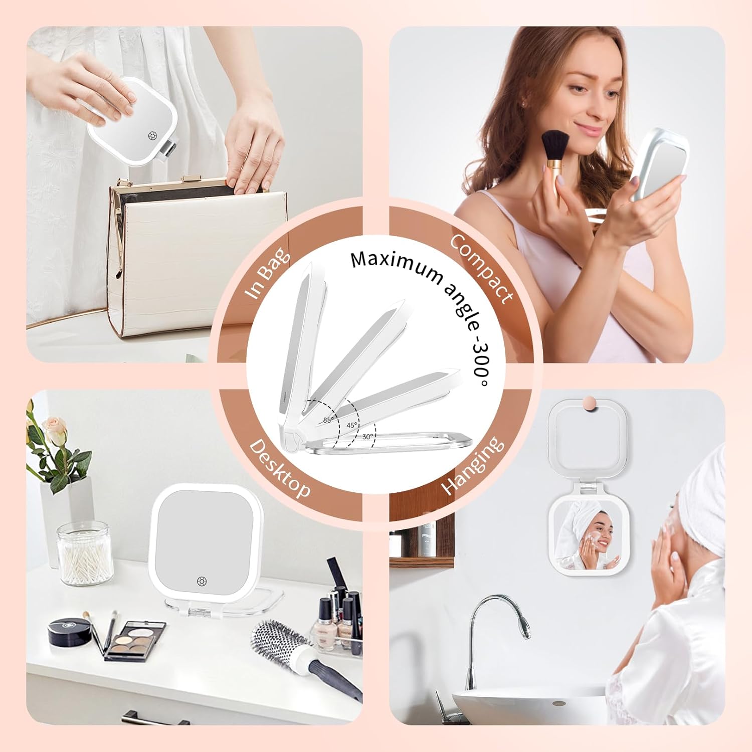 - 【Satisfaction Guarantee】Fascinate travel makeup mirror has passed IE 6227, FCC, ROSH and CE certifications! We package with a Type-C charging cable and a user manual. We provide 24/7 customer service and 12 months warranty. If you have any questions, please feel free to contact us!