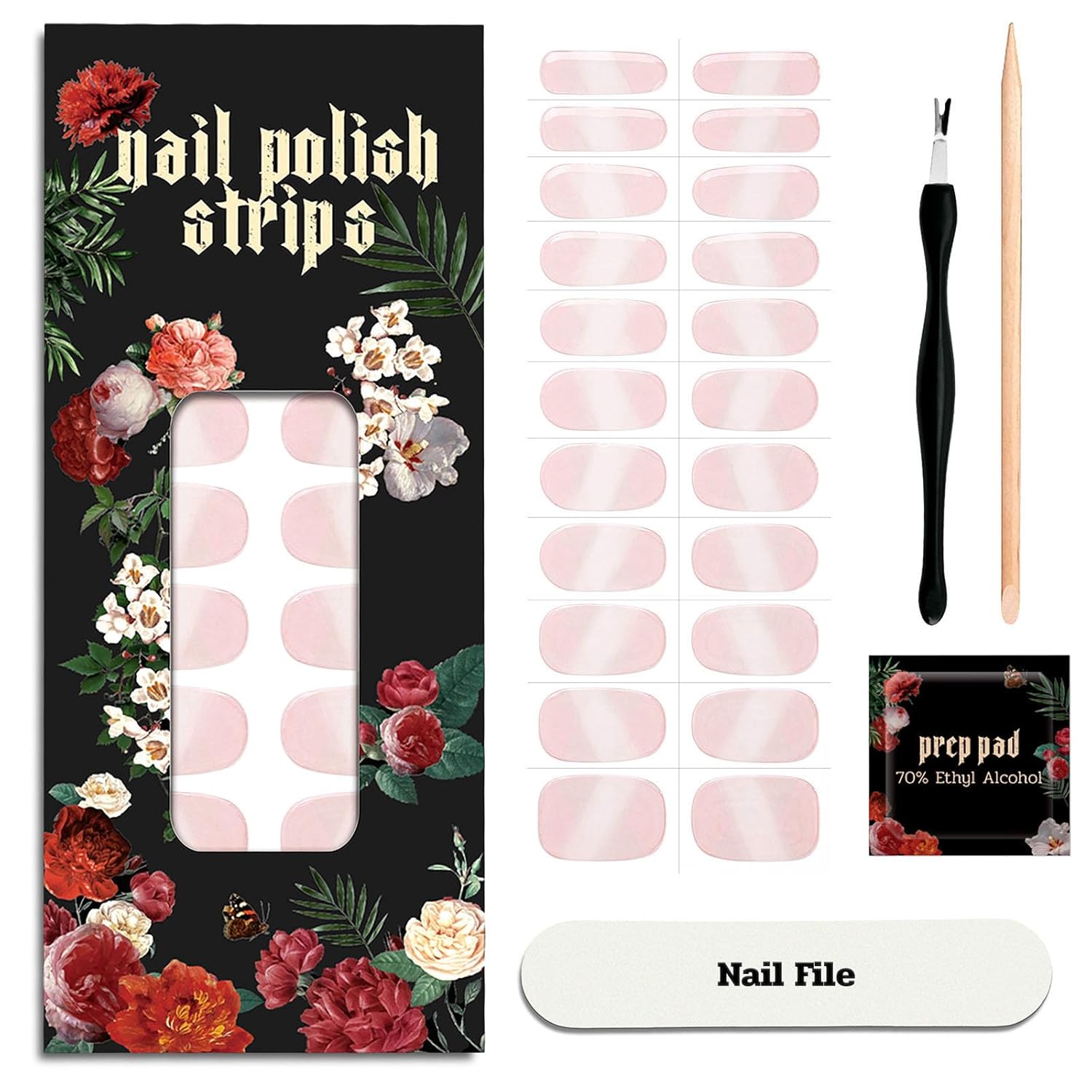- New Technology - Compared with traditional nail polish and semi-cured gel nail strips, Our nail strips are dry cured with glossy 3D nails effect. No need for uv light and drying time, these nail polish strips are thinner and more breathable, providing better protection for your nails. The gel nail strips is made of 100% cosmetic ingredients without any toxic or harmful materials.