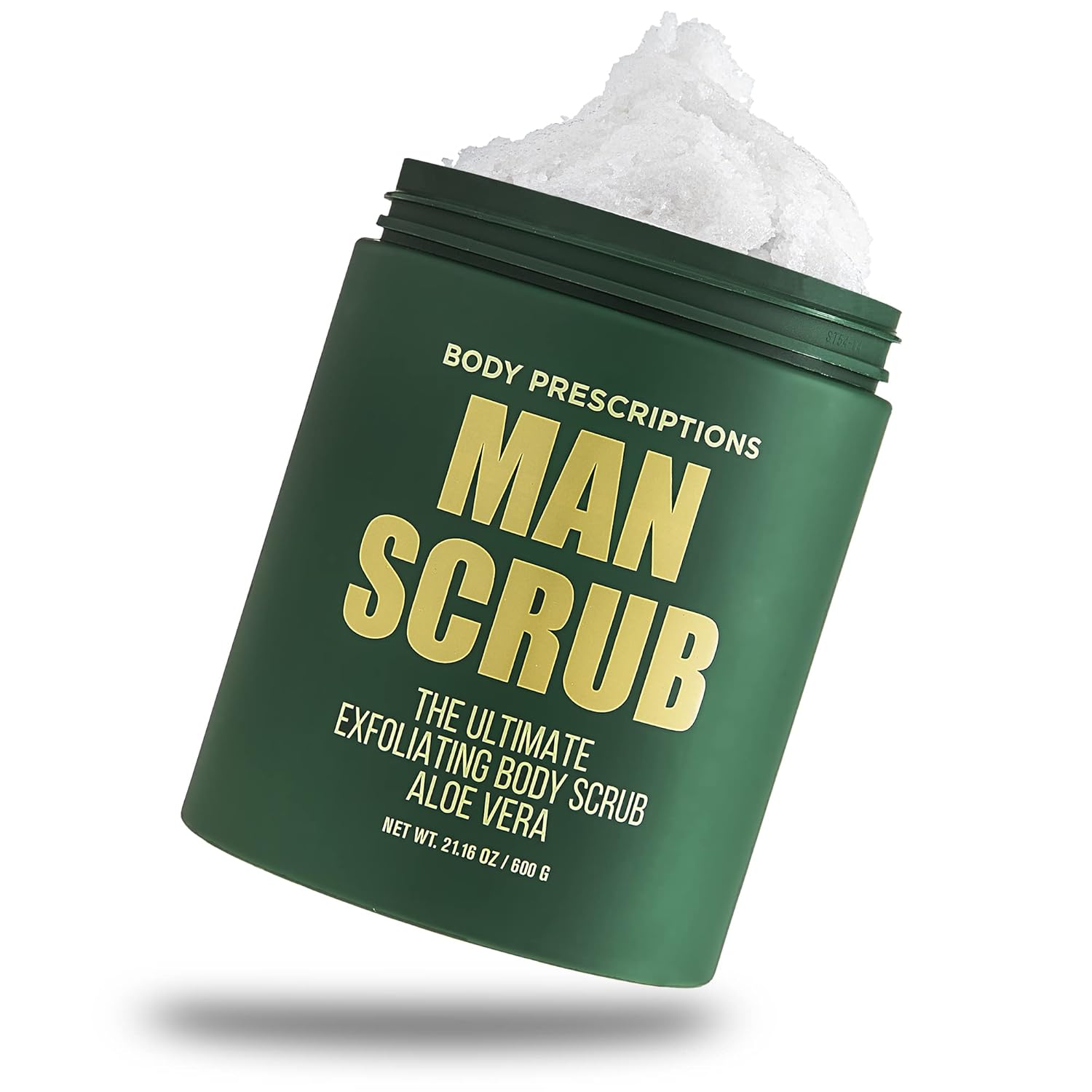 - RELAX + REFRESH: Delight your senses and relax at home with this 21.06 oz ultimate exfoliating body scrub from body prescriptions. The “Man Scrub” comes in a large jar with an easy-to-use twist off top.