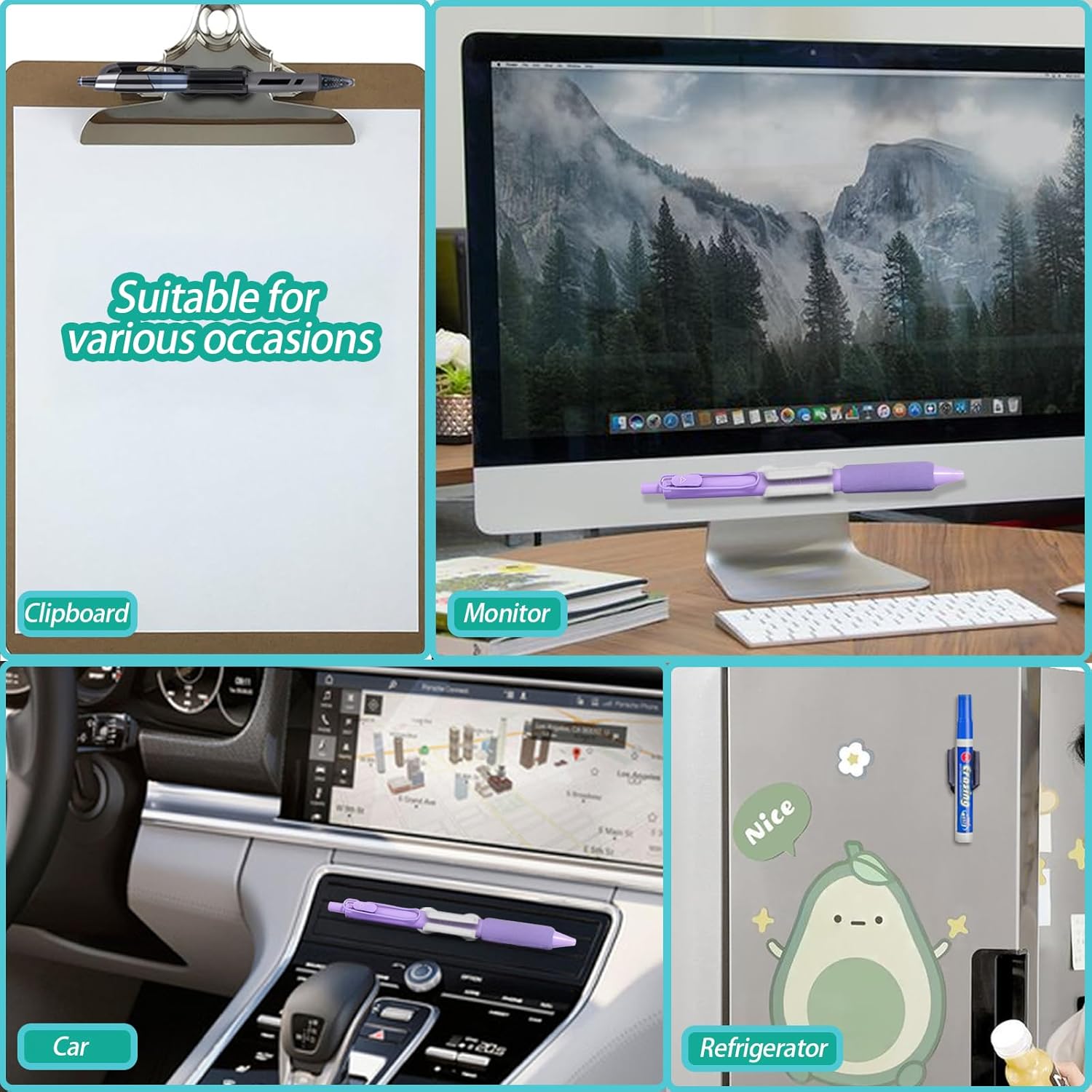 - Small Body Big Role: The wall pen holder is small, but it does a lot. This stylus holder not only keeps the study/work space organized and comfortable, but also keeps the pens you want at reach where you want them to be, ensuring easy access and making learning or work more efficient. It can be sticked on desk, whiteboard, folder, clipboards, computer, refrigerator, wall and other smooth and flat object surfaces. Suitable for home, school, office, gym, car, hospital, bank, bar and so on.