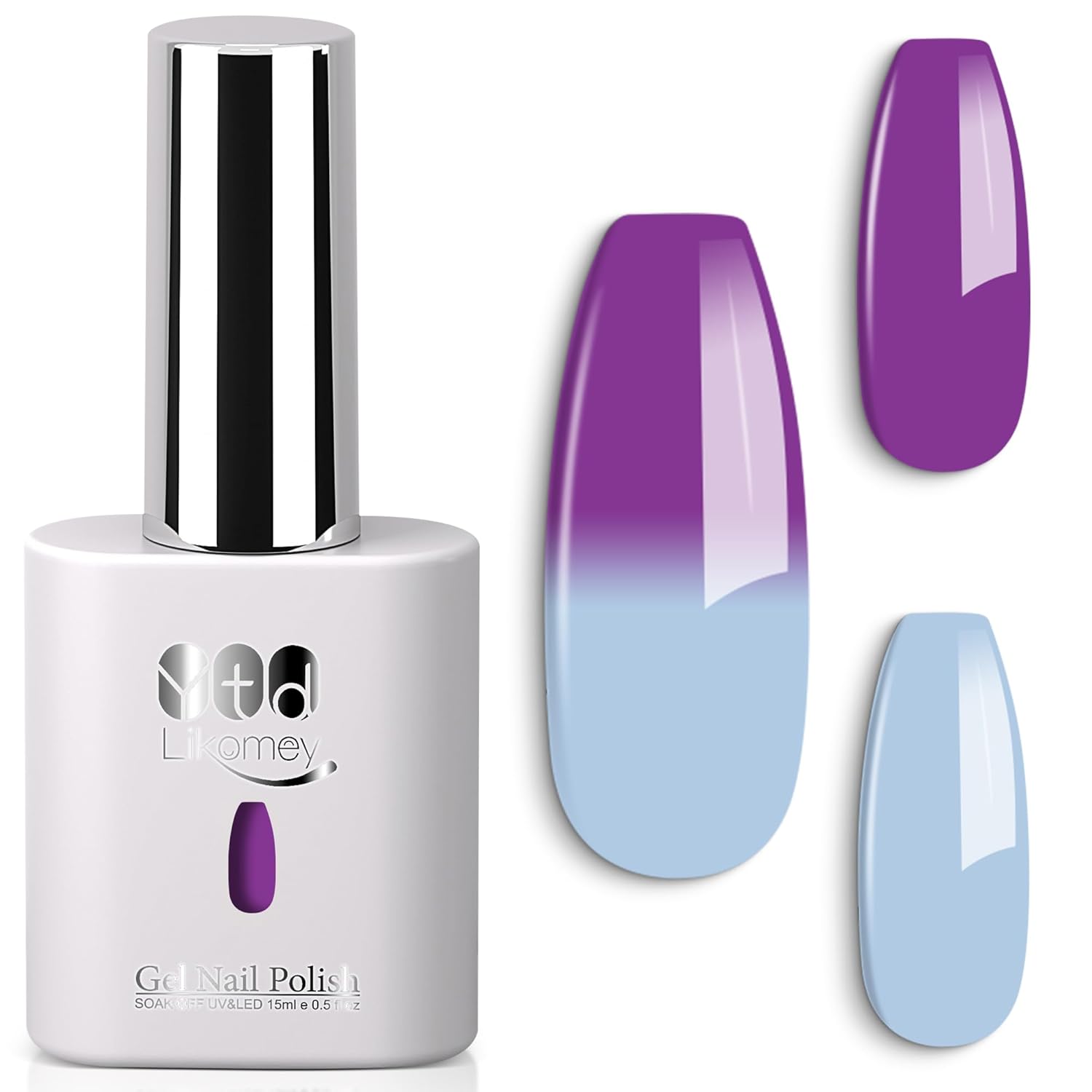 YTD Likomey Color Changing Gel Nail Polish,15ml Blue to Purple Mood Temperature Change Colors UV Nail Gel,Fall Winter Thermal Ombre Manicure Varnish,WB428