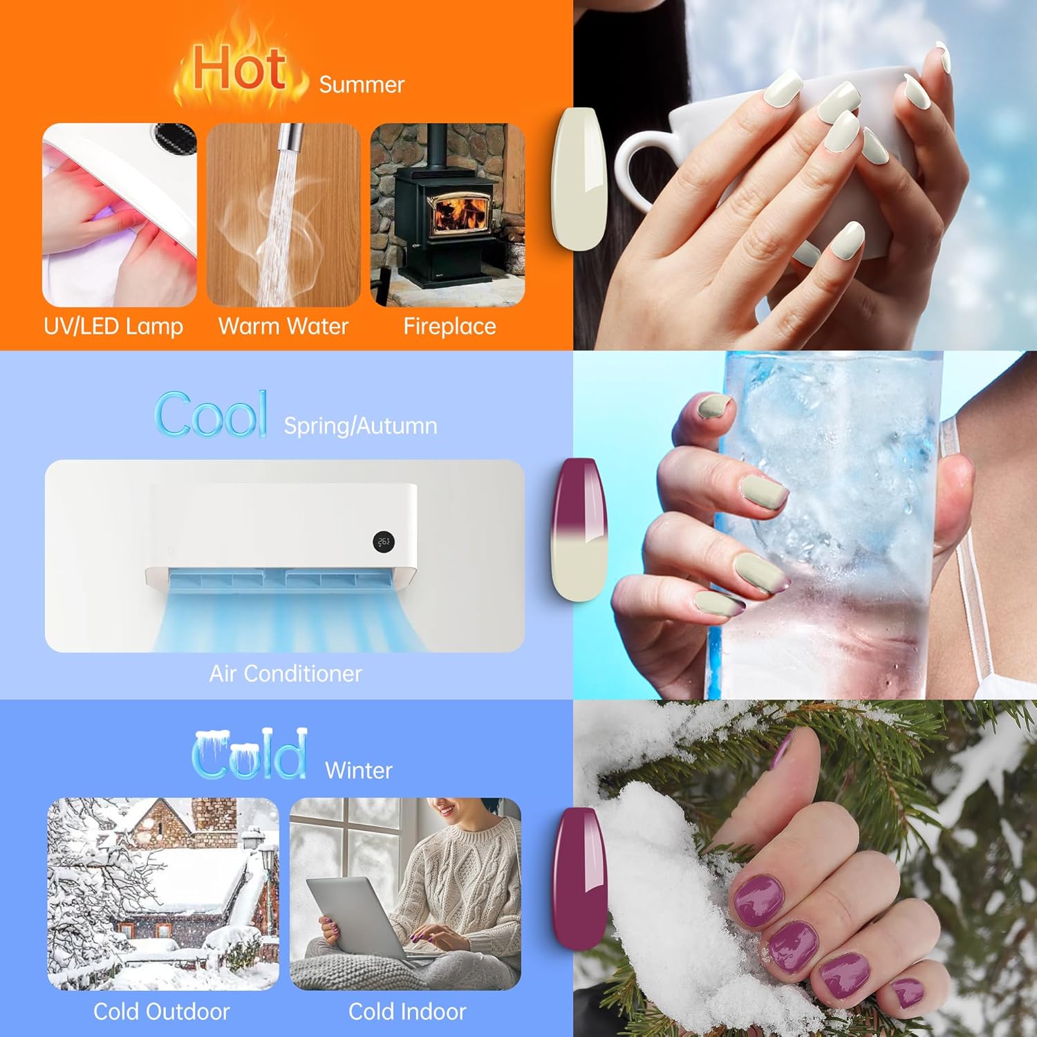 YTD Likomey Color Changing Gel Nail Polish,15ml Green to Grape Purple Mood Temperature Change Colors UV Nail Gel,Fall Winter Thermal Ombre Salon Manicure Nails Varnish,WB427
