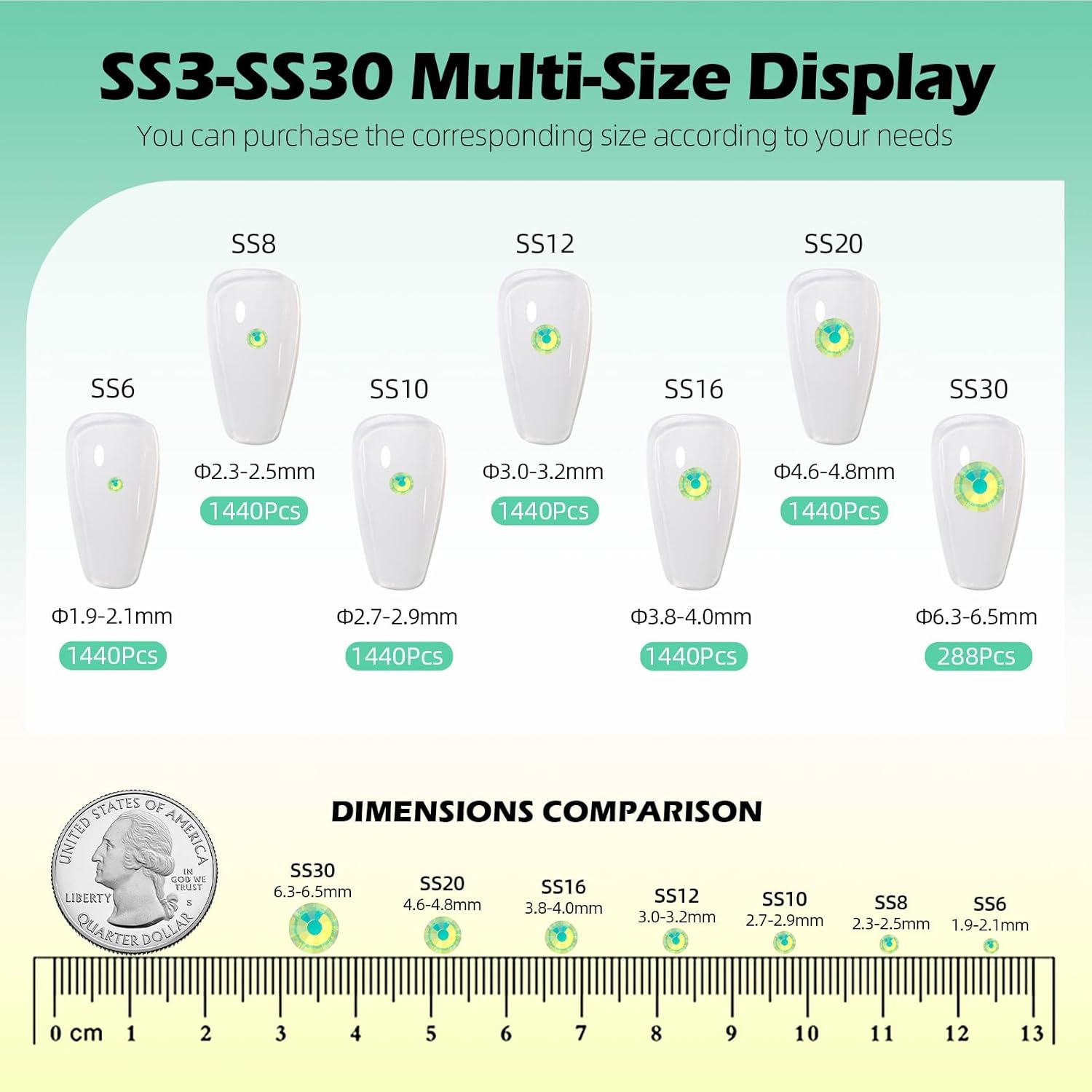 - Material: Glass/Artificial Crystal, Flat Back Round, High-precision cross-section, multi-sided cutting, high brightness, high Sparkly