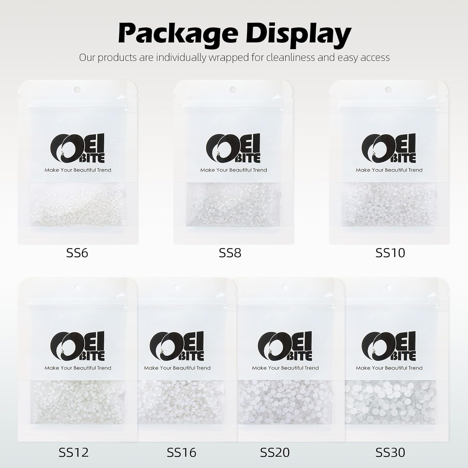 - Product Packaging: Bags packaging SS10 2.7~2.8 MM - 1440 Pcs Neon White flatback rhinestones