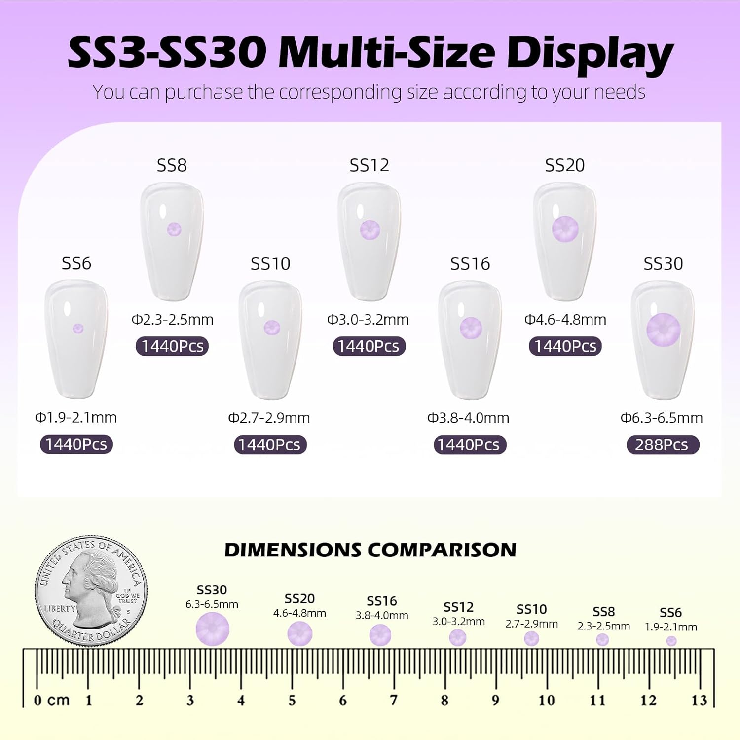 - Material: Glass/Artificial Crystal, Flat Back Round, High-precision cross-section, multi-sided cutting, high brightness, high Sparkly