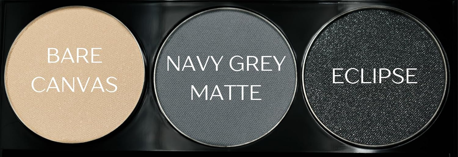 Off White, Matte Medium Grey Blue, and Glitter Black Deep Navy Blue Vegan Eyeshadow Trio Palette; Talc, Paraben & Cruelty Free