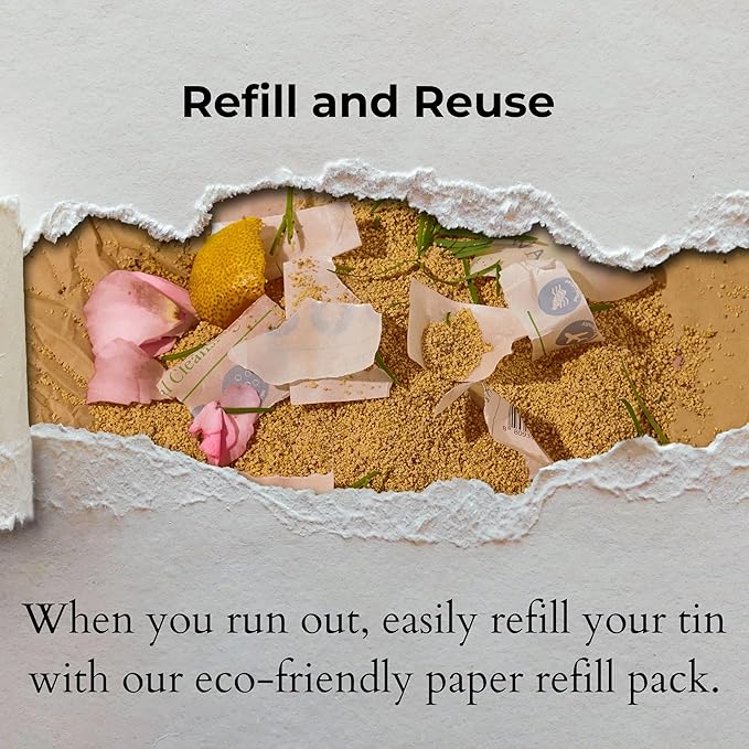 - Eco-Friendly Packaging: Packaged in a stylish, reusable tin and biodegradable refill packs, our tablets eliminate plastic waste and support a zero-waste lifestyle.