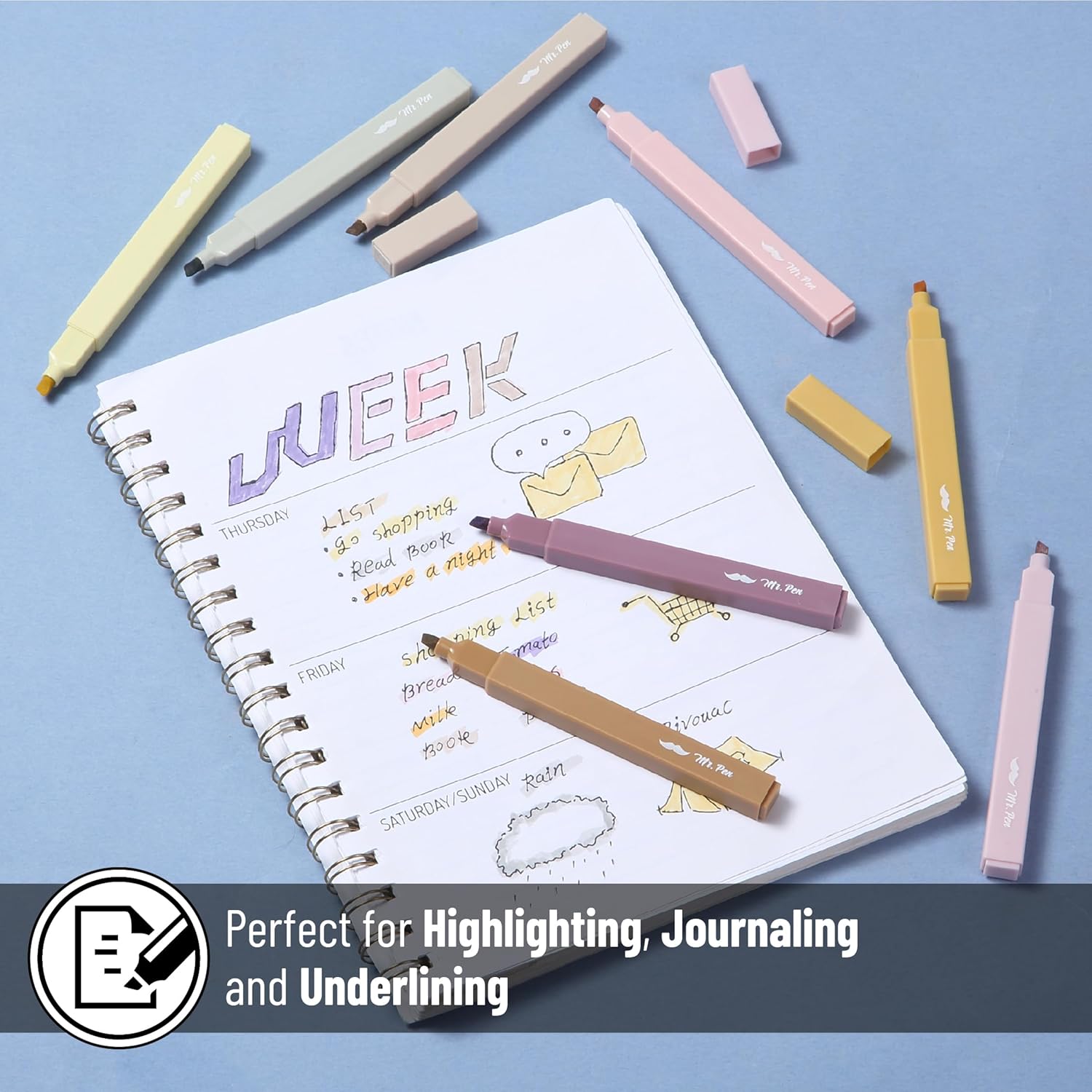 Mr. Pen- Aesthetic Highlighters, 8 Pack, Chisel Tip, Vintage Brown, Cute Highlighters Assorted Colors