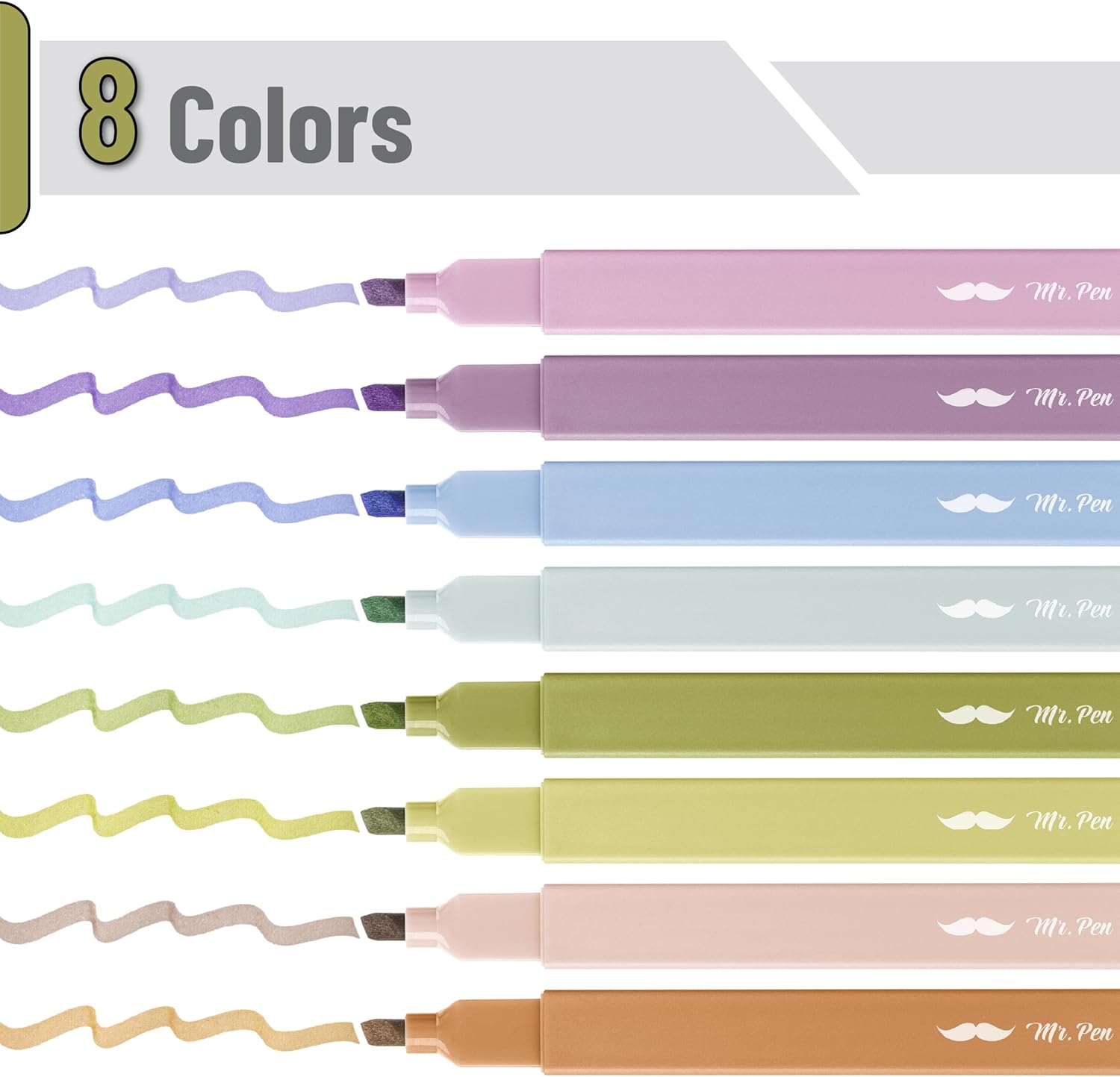 - Mr. Pen aesthetic highlighters come in a set of 8 serene, earth-inspired colors that bring natural elegance to your notes and projects.