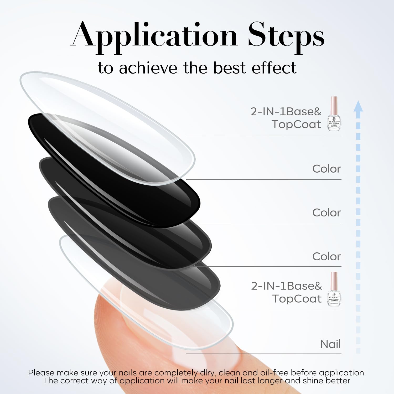 - 2-in-One Clear Base & Top Coat: Achieve a flawless finish with AZUREBEAUTY clear 2-in-One base and top coat(2 PCS). This versatile formula serves as both a base coat to protect your nails and a top coat to seal your manicure with a glossy shine