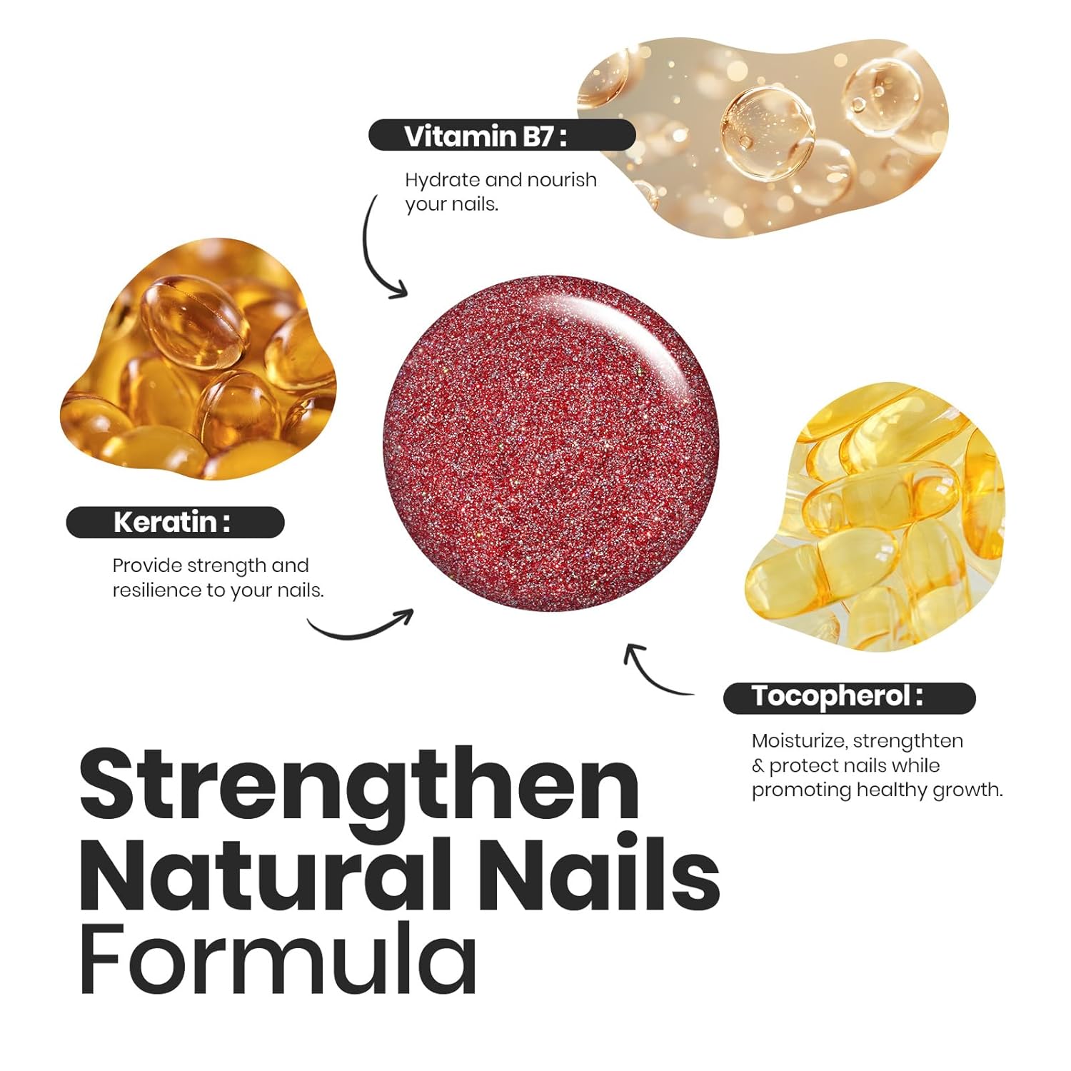- 【Quick Dry Nail Polish】: This glitter nail polish set does not need to be cured under the UV/LED nail lamp. It only needs natural air drying for 1-2 minutes, which is convenient and quick to dry. It can easily create a nail salon effect in a few minutes!