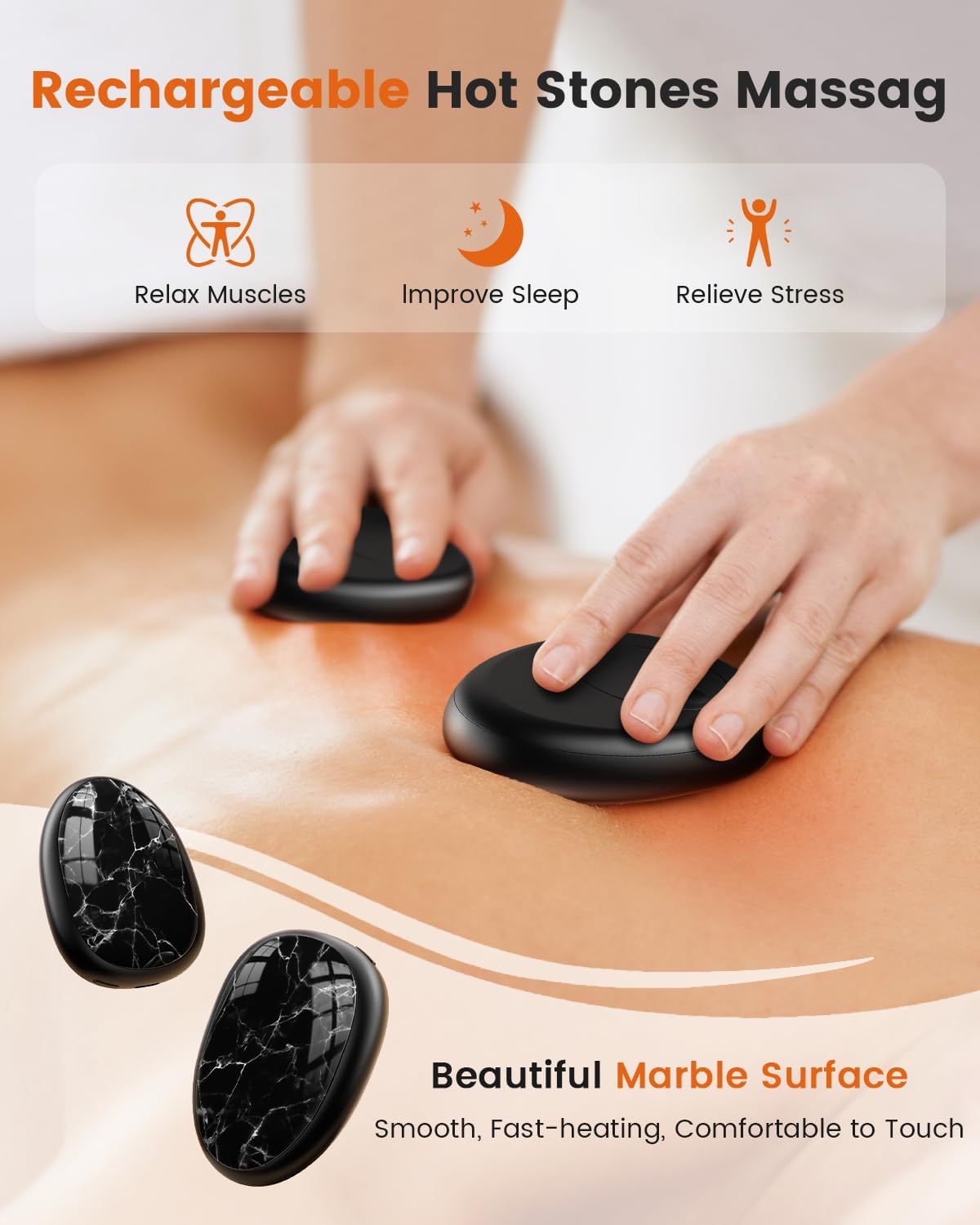 Hand Warmers Rechargeable 2 Pack, AI Temperature Control Electric Handwarmers, Stone Shape Portable Pocket Heater, Great Gift for Christmas Hunting, Golf, Camping Black