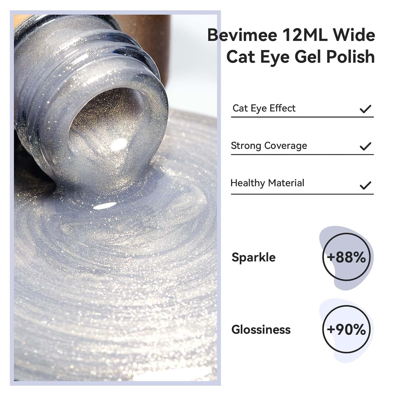 - Glitter Cat Eye Gel: Bevimee glitter cats eye gel nail polish has a unique formula that coats nails in a shimmering, grainy finish that catches every light. Trendy colors are suitable for all seasons and daily routines