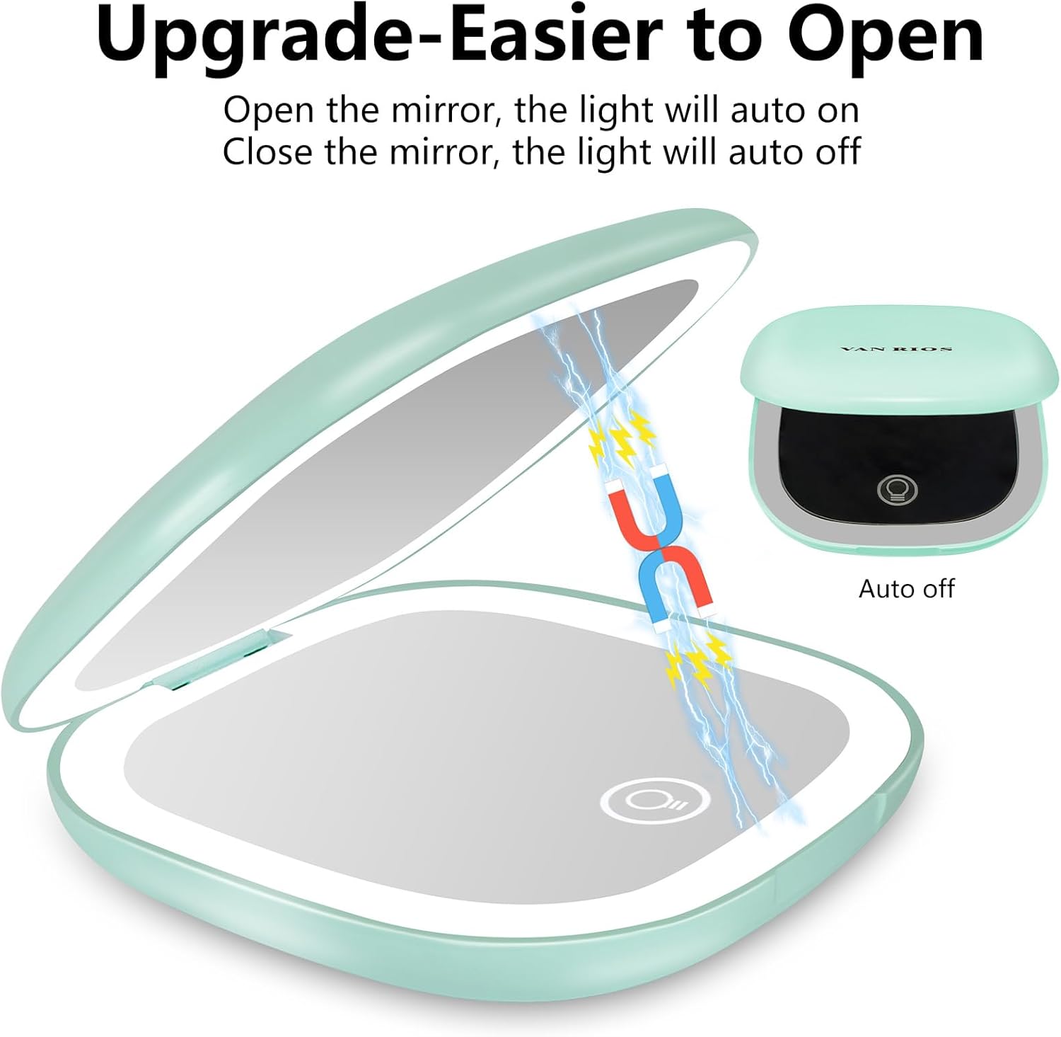 - LED LIGHTING FOR ALL SITUATIONS:Equipped with dual LED lights, this small hand held mirror offers three different light settings to perfectly match any environment. The automatic shut-off feature ensures your lighted travel makeup mirror conserves battery life, making it a reliable travel essential.