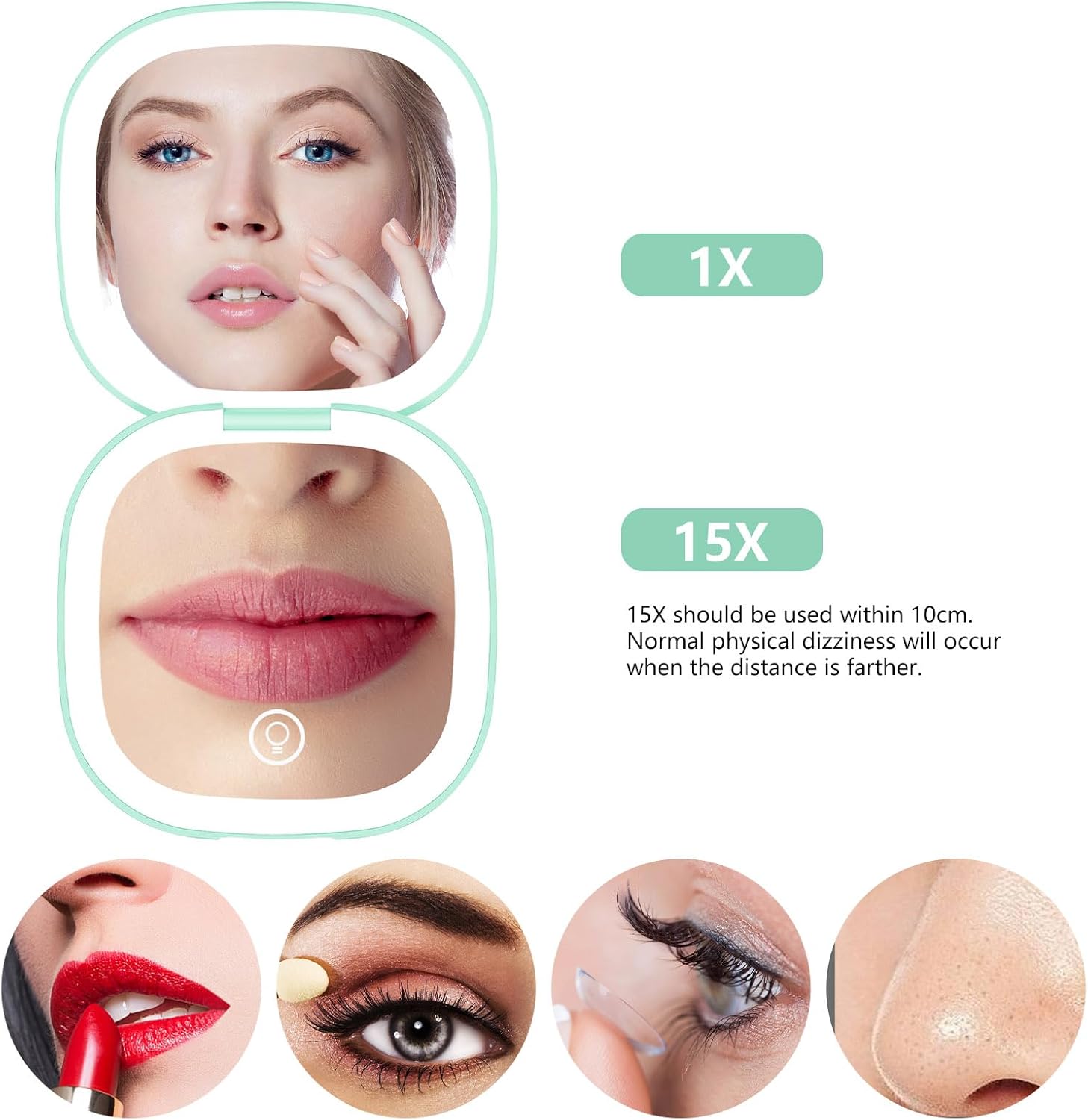- DUAL-SIDED MAGNIFICATION FOR PRECISION:Featuring a 15x magnifying mirror on one side, this compact mirror is perfect for detailed makeup application. The other side provides a standard view, making this travel makeup mirror versatile for any beauty routine, whether at home or while traveling.