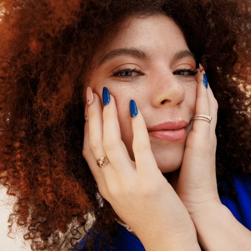 Semi Cured Gel Nail Strips | No LED Lamp Needed | Solid, Blue, Spring | Easy Apply & Remove, Salon Quality | Includes 28 Strips, 1 Prep Pads, Nail File & Wooden Stick - Hey, Let's Play Ball