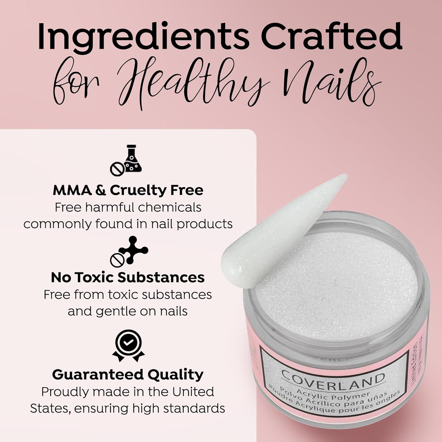 - PROFESSIONAL GRADE: The flexibility and adhesion properties of Coverland colored acrylic nail powder make it easy to shape nails with precision, and offers nice control for professionals who prefer to work with a polymerization rate of moderate to fast.