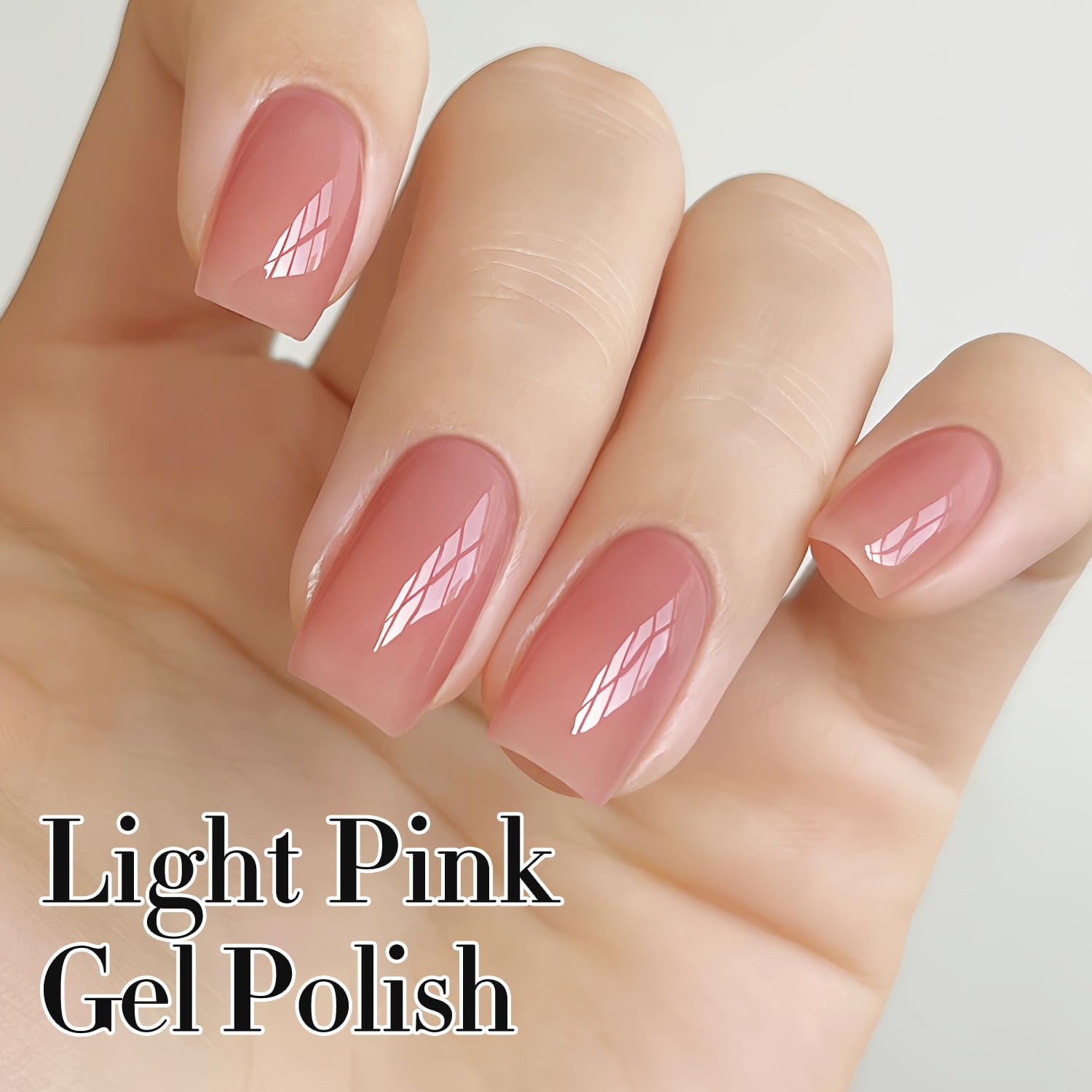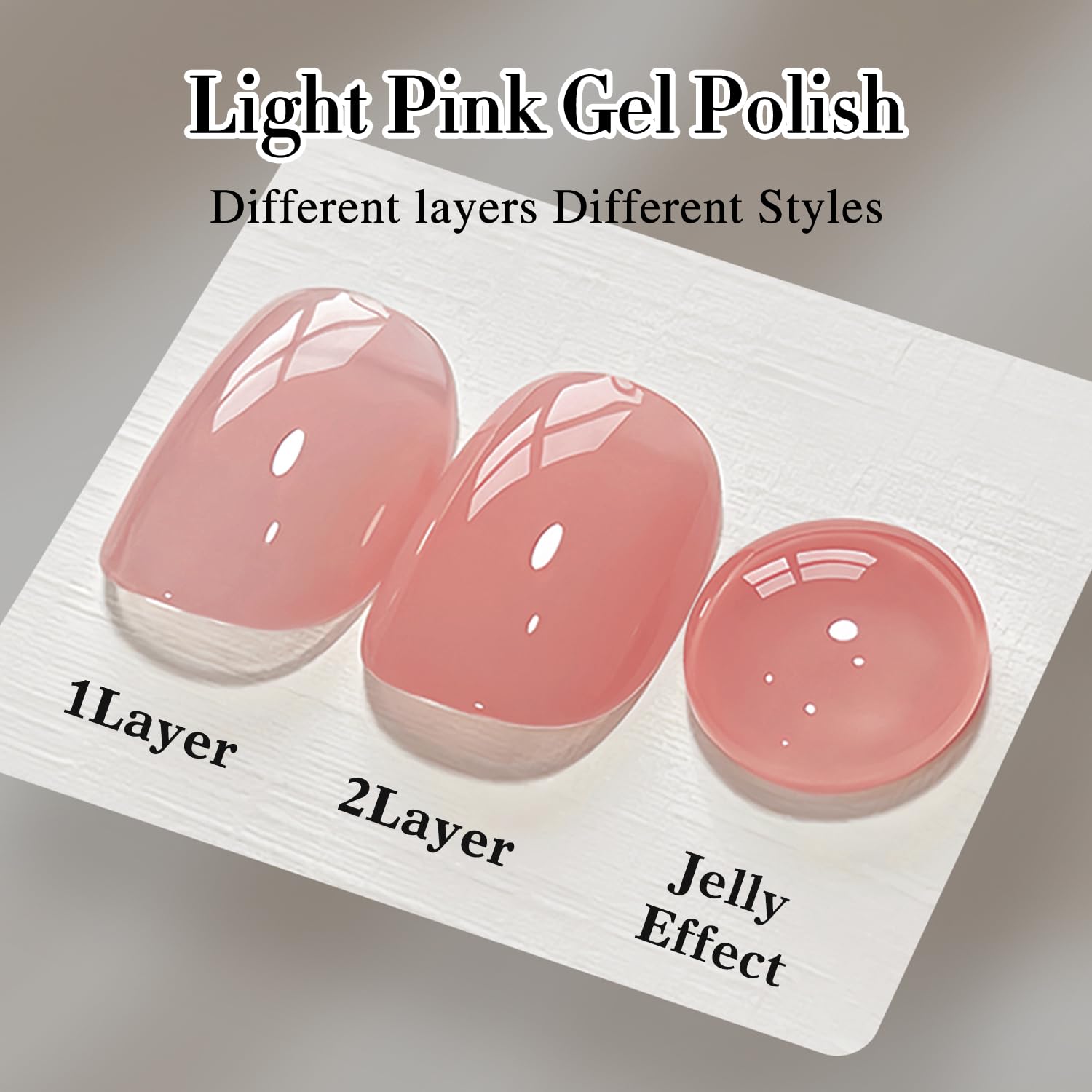 Double Rhythm 0.50 OZ Translucent Gel Polish Same Color Same Bottle Sheer Pastel Neutral Natural Milky 15 ML Jelly UV Nail Art DIY at Home (Light Pink-A1494)