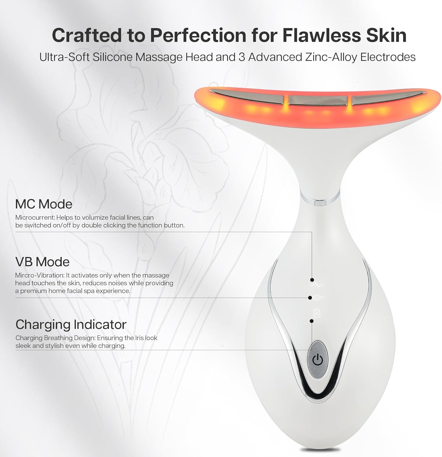 - 【Skin-Friendly & Comfortable Contact】 The Iris stands out as the one and only on the market featuring a silicone massage surface with this type of face massager tools. Unlike others made with ABS, the contact area of the massage head made with skin-friendly silicone material that not only offers a gentle touch but also provides a premium facial spa experience for you.