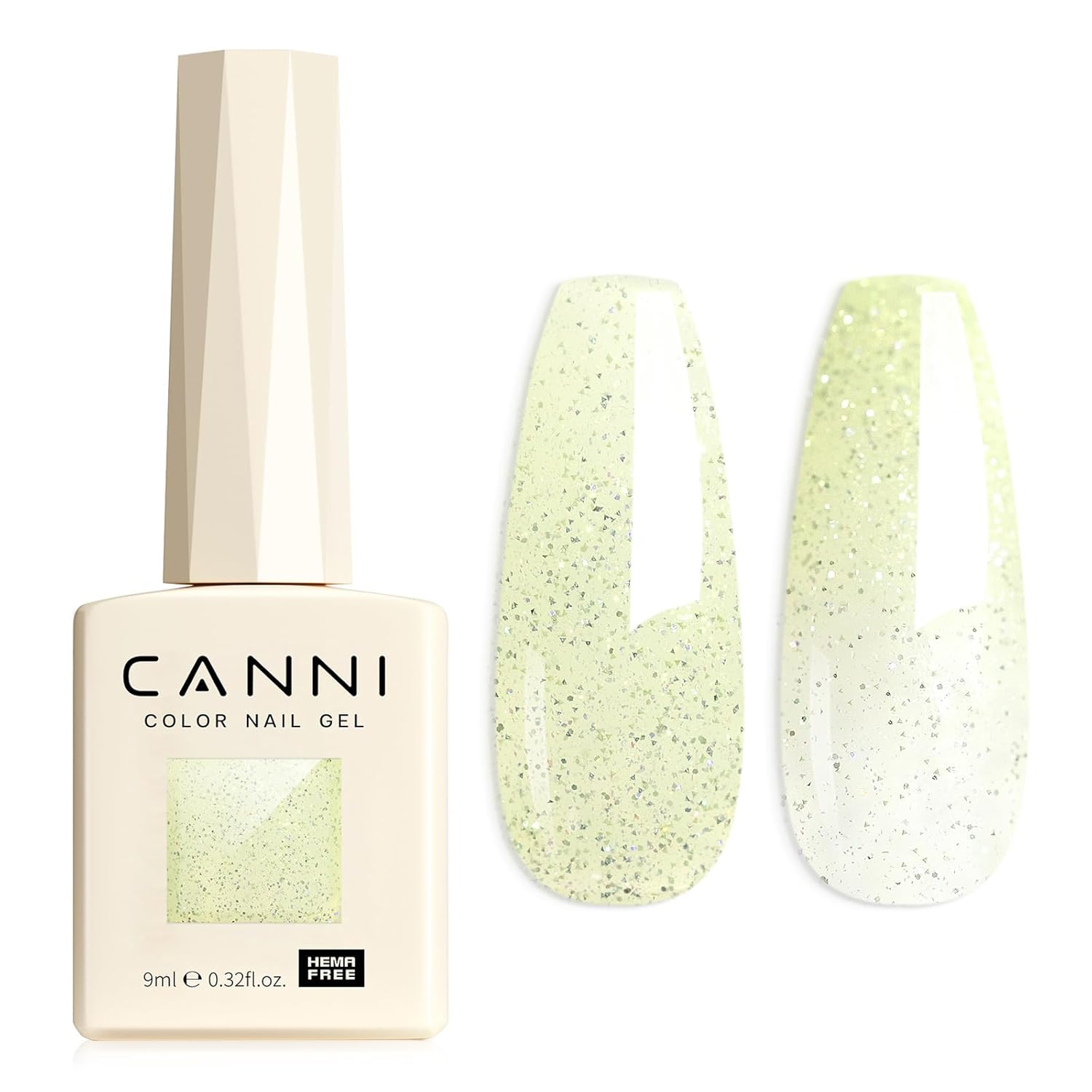 CANNI 1 Pcs Glitter Green Gel Nail Polish, Shimmer Sparkly Light Green Colors Gel Polish Soak Off Led Nail Art Gel Manicure Salon DIY