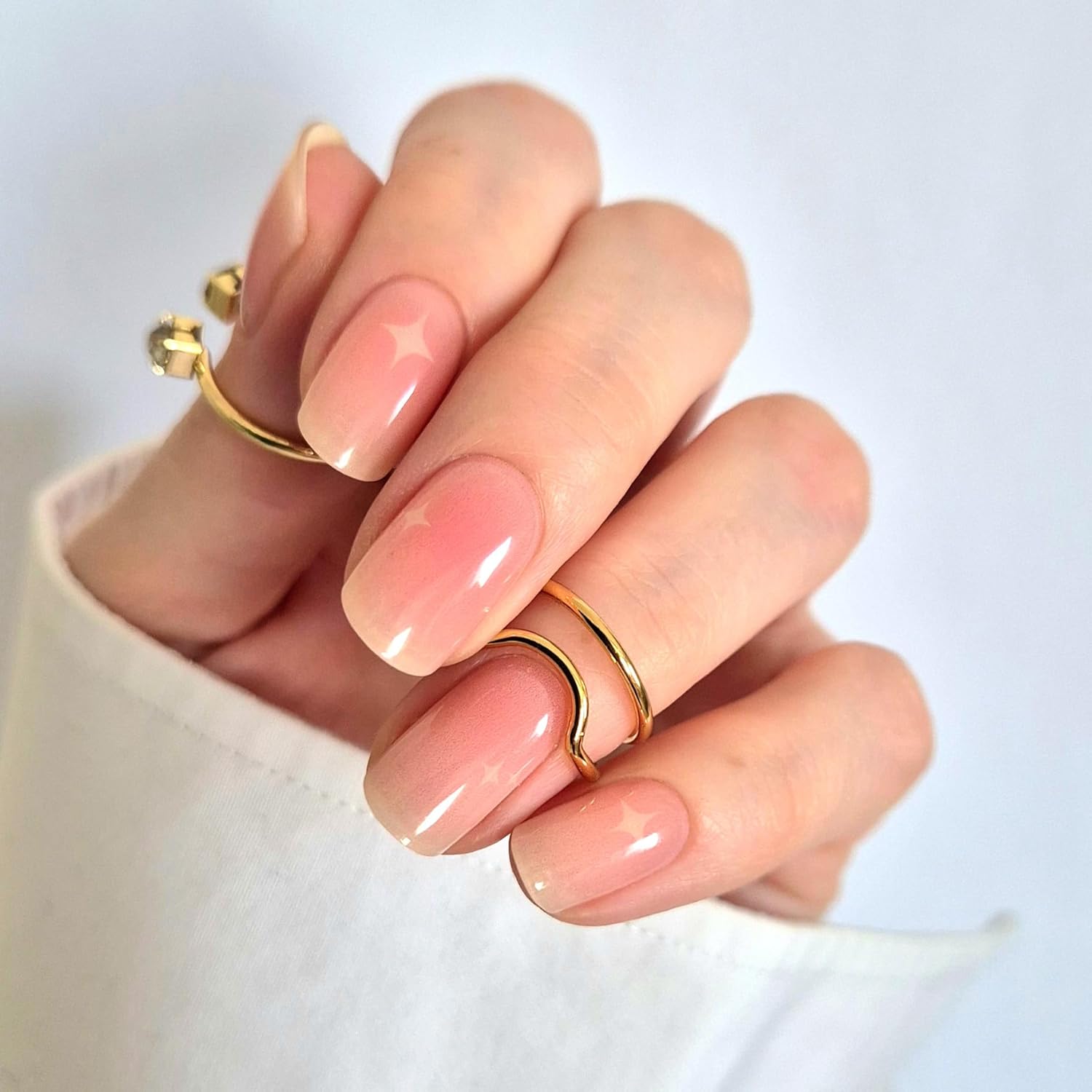 60% Semi-Cured Gel Nail Strips Kit (shy girl) – Long Lasting, Easy to Apply Premium Nail Set, 24 pcs, Includes 2 Prep Pads, Nail File, Cuticle Stick