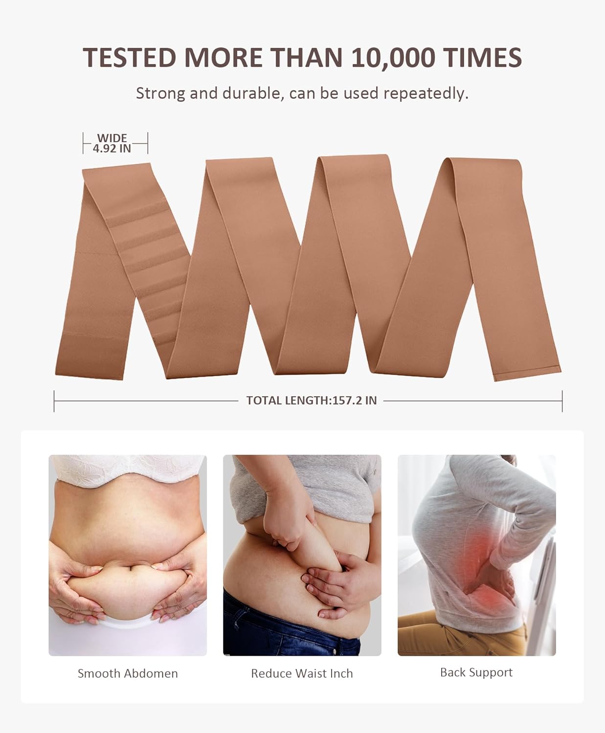 - One Size Fits All: Our waist wrap is designed to accommodate all body types with its one-size-fits-for all size within 23.5 IN-47.5 IN waistline. Measuring 157.2 IN in length and 4.92 IN in width, this bandage wrap offers versatility in snatching your waist, allowing you to adjust the tightness to your preference to your preference for ultimate comfort. Warm tips-Thinner women need to wrap more circles, will appear thick, full-figured women can wrap fewer laps and also have tummy coutrol.