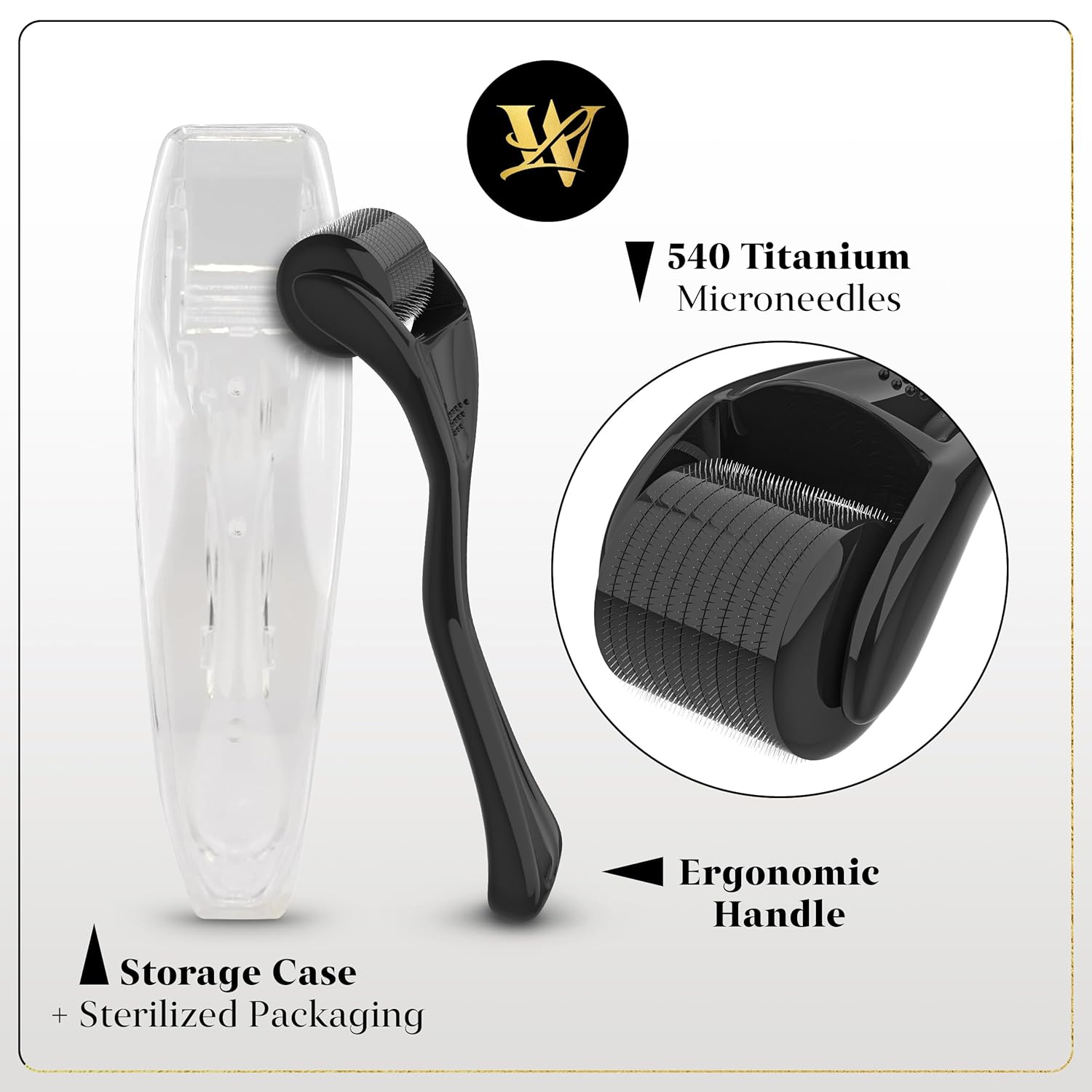 - Titanium Microneedling Roller – Sterilized & Durable – Made with 540 high-quality titanium needles, ensuring durability and safety. Includes a sterilized roller and storage case to keep it clean.