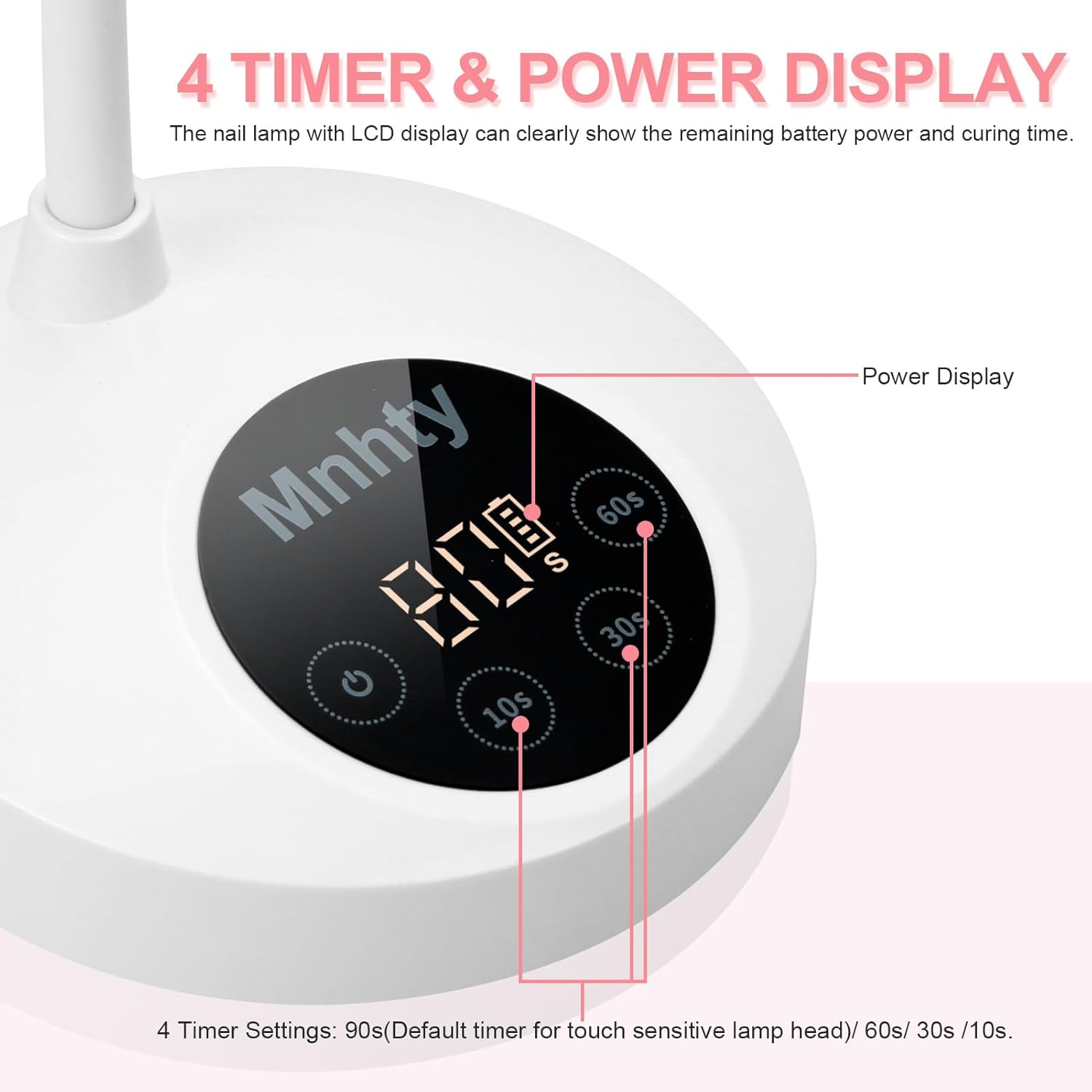 - Multiple Timing Modes & LCD Display Mini Nail Lamp: The flash cure lamp with LCD display can clearly show the remaining battery power and accurately record your nail curing time. The gooseneck nail lamp for gel x has four timing modes(10s, 30s, 60s and 90s) that can be selected according to the time required for different gel nails. The flash cure light is an essential nail tool for beginners and professional nail manicurist.