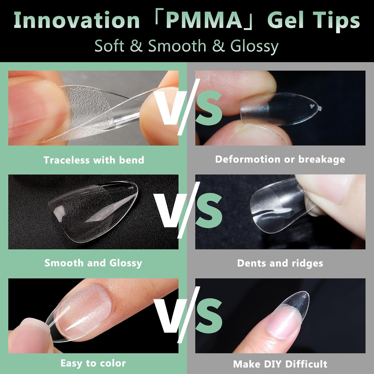 - No Trace Soft Gel Nail Tips: Crafted from gelly soft gel material, these fake nails leave no trace even when bent. Their bright clarity allows for easy pressing, trimming, and painting, helping you create your ideal nail shape effortlessly. Perfect for a true DIY manicure.