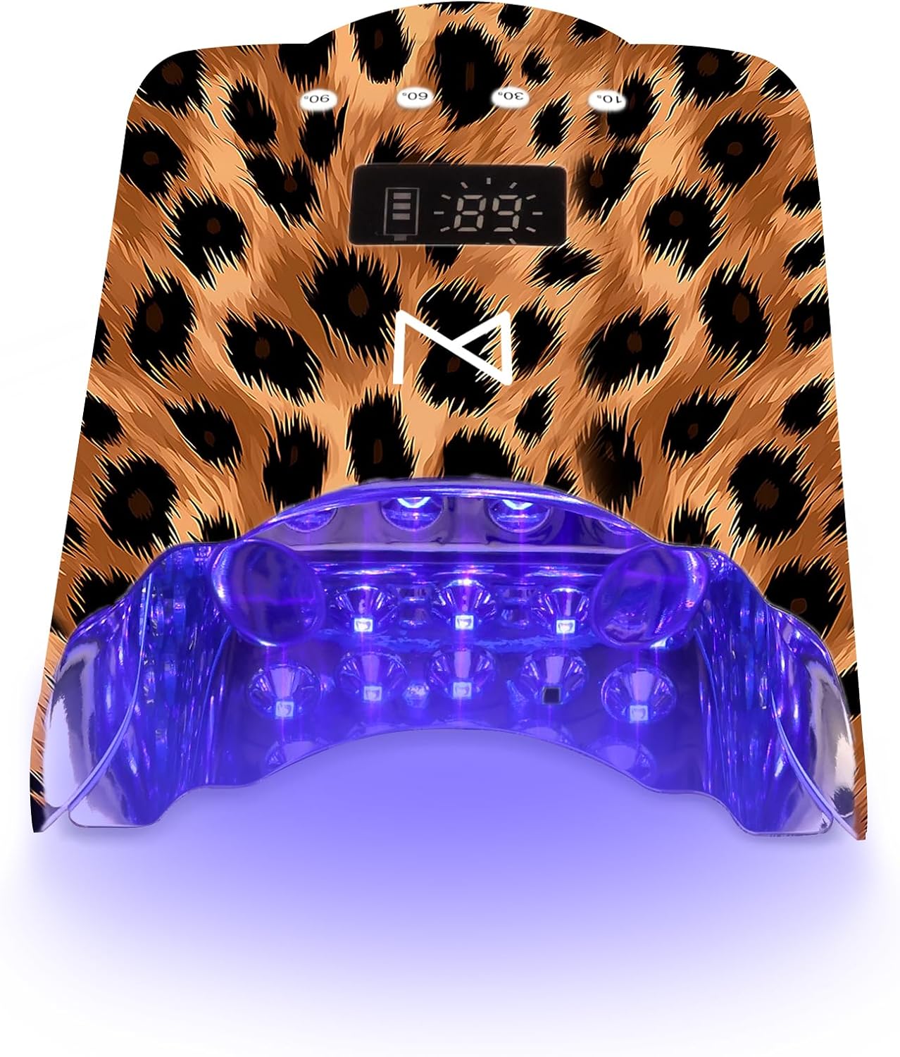 M - NEO Cordless & Rechargeable Nail Curing Lamp 78W with 4 LCD Time Display Timer, Auto Sensor, and Spacious Interior for All Hand Sizes and Nail Lengths (Leopard)