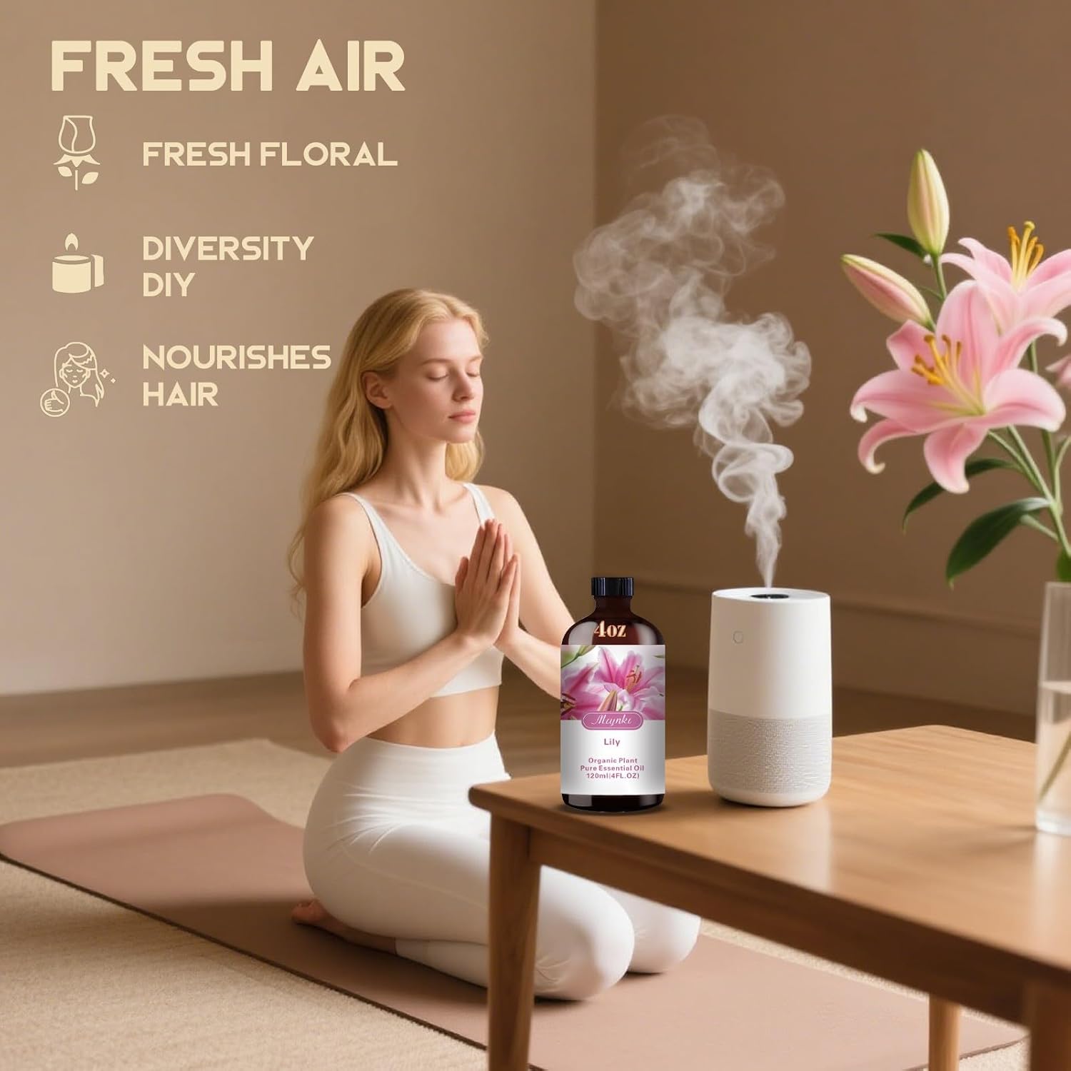 Lily Fragrance Oil-Lily Essential Oil 4.33oz (130ml)-100% Pure Natural Scent for Diffusers, Candles, Soap Making & Aromatherapy-Relaxing Home & Gift Essential Oil for Bath, Massage