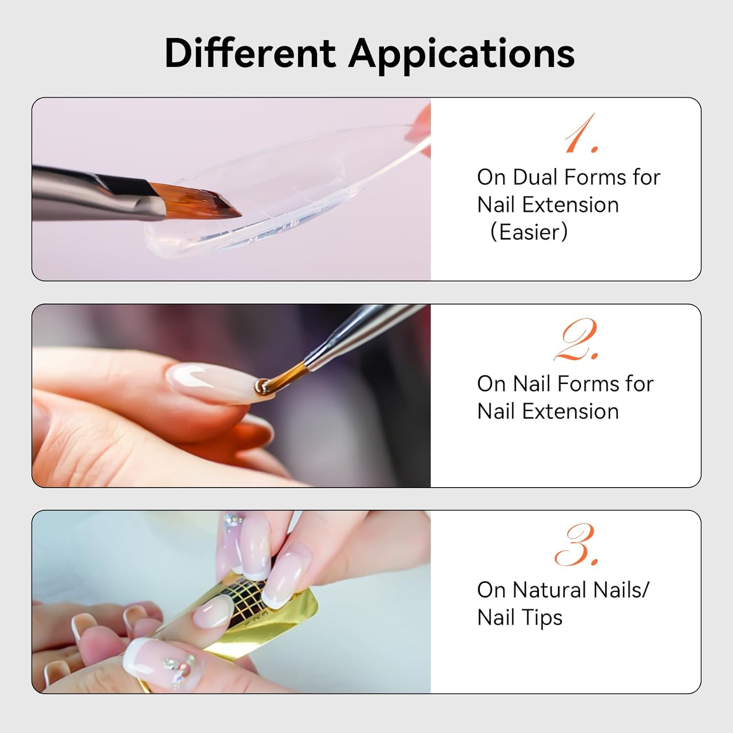- Smooth Application: Makartt nail extension gel boasts excellent flow for flexible and even application. A bit of residual stickiness enhances adhesion between the nail and gel layer. For the ultimate results, use it with a base and top coat. It can be used in conjunction with dual forms, paper nail forms, and nail tips; dual forms release easily, while nail tips may require some skill. Using a nail shaping clip can help refine nail shapes, making your manicure process even more flawless