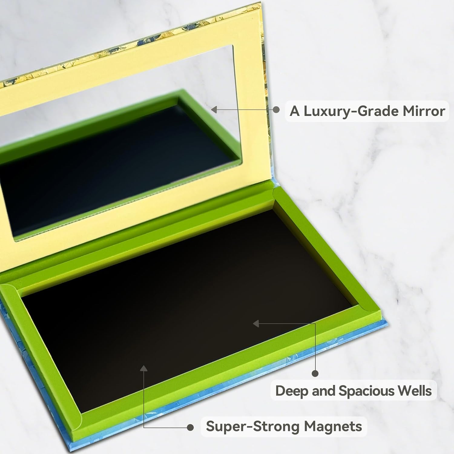 - Enough Space and Depth: The exterior dimension of the palette is 8.06" L x 5.11" W x 0.71" D, and the interior dimension is 7.1''L x 4.13'' W x 0.28'' D, allowing you to store up to 28 eyeshadow iron pans with 1-inch diameter. It can easily carry all kinds of pans you have.