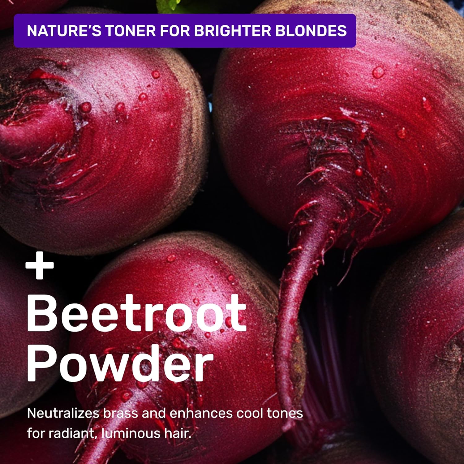 - TONE YOUR TRESSES: Banish brassiness and keep blonde or grey hair looking its best! Our Purple Shampoo Bar neutralizes yellow hues, leaving your locks looking fresh and radiant. Infused with babassu oil to strengthen, beetroot powder to soften, and betaine to nourish, itβs your go-to for healthy, beautiful hair.