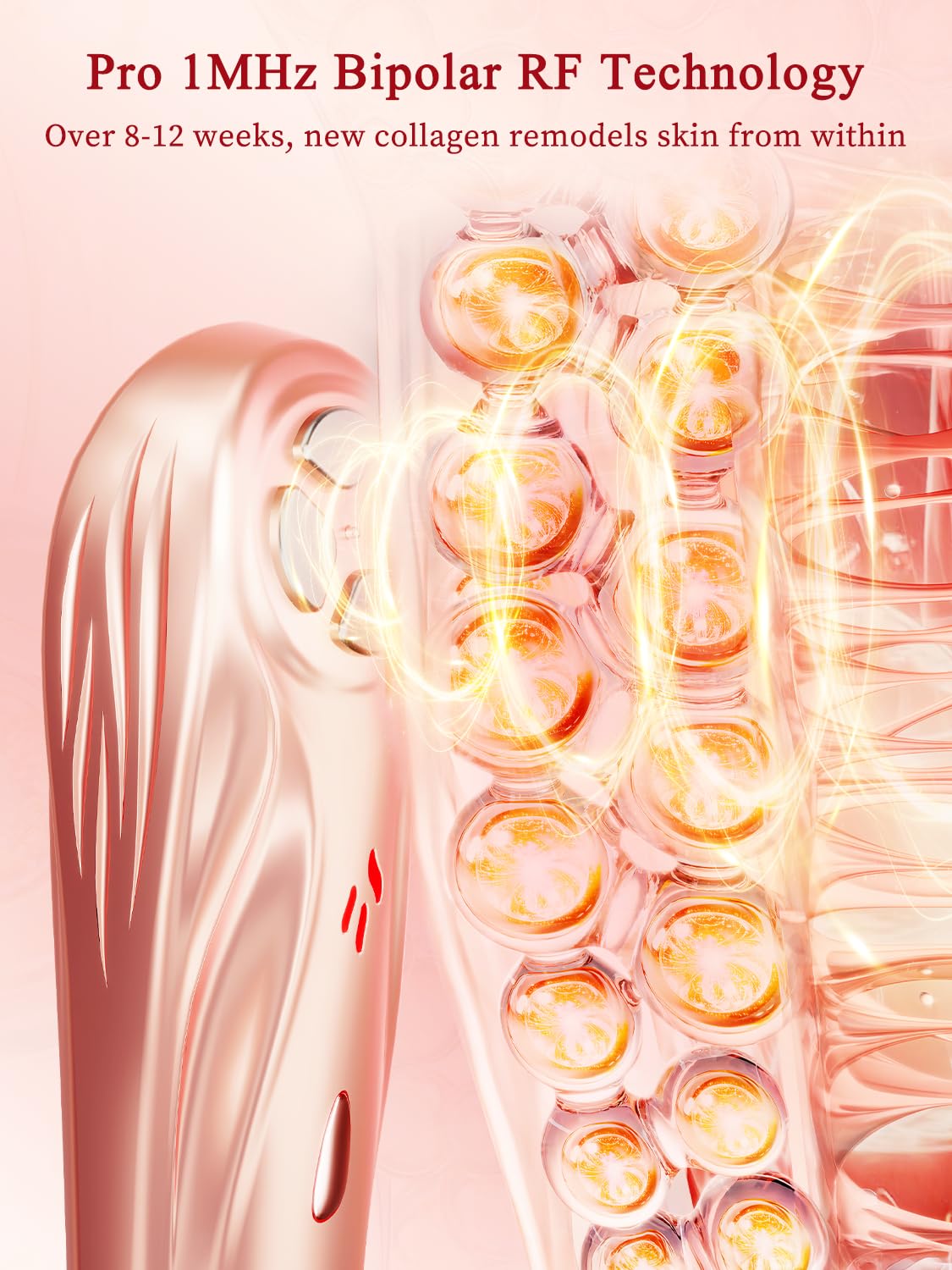 - 【Professional-grade RF Technology】Nulift radio frequency skin tightening device utilizes advanced 1MHz bipolar radio frequency technology to precisely deliver energy to the dermis. Through gentle heating, it effectively promotes collagen fiber remodeling, thereby creating a natural "scaffolding" effect, reducing skin sagging, smoothing wrinkles, and restoring skin density