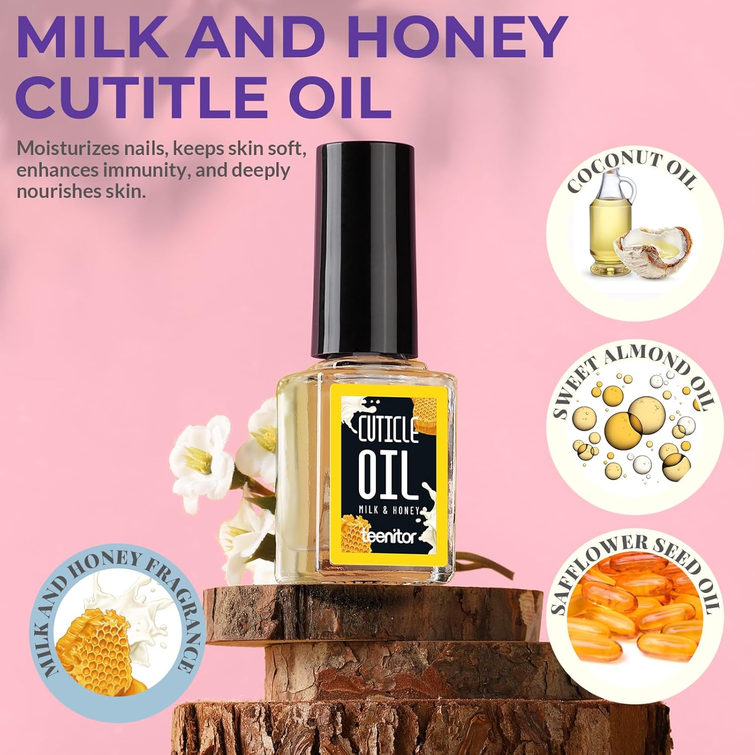 - Milk and Honey Cuticle Oil: Apply cuticle oil before and after soaking nails to protect your hands and moisturize your nails. Natural honey and milk cuticle oil, rich in oils and multivitamins. Can quench dry cuticles, provide protection and deeply soothes and hydrates skin. Cuticle oil protects and nourishes dry, brittle cuticles and nails. leaving your cuticles and nails looking shiny and lustrous