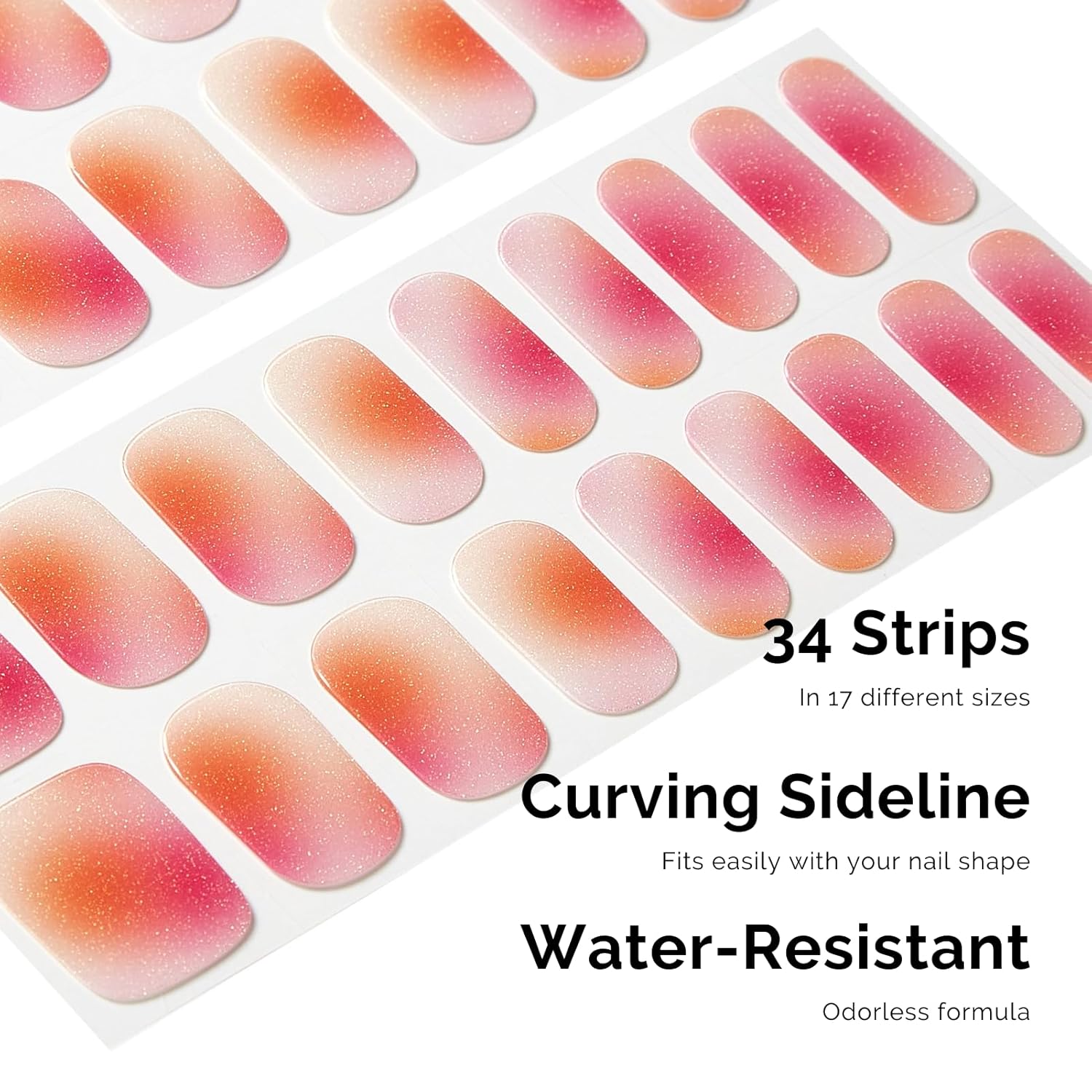 - ❤WHAT YOU GET: 34 Pieces gel polish strips in 17 sizes, 2 prep pads, 1 nail file, and 1 wooden stick. -Our semi cured nail strips are free from toxic, animal-derived, or harmful ingredients and are vegan, safe to use, and odorless. A perfect cost & time-saving DIY manicure kit.