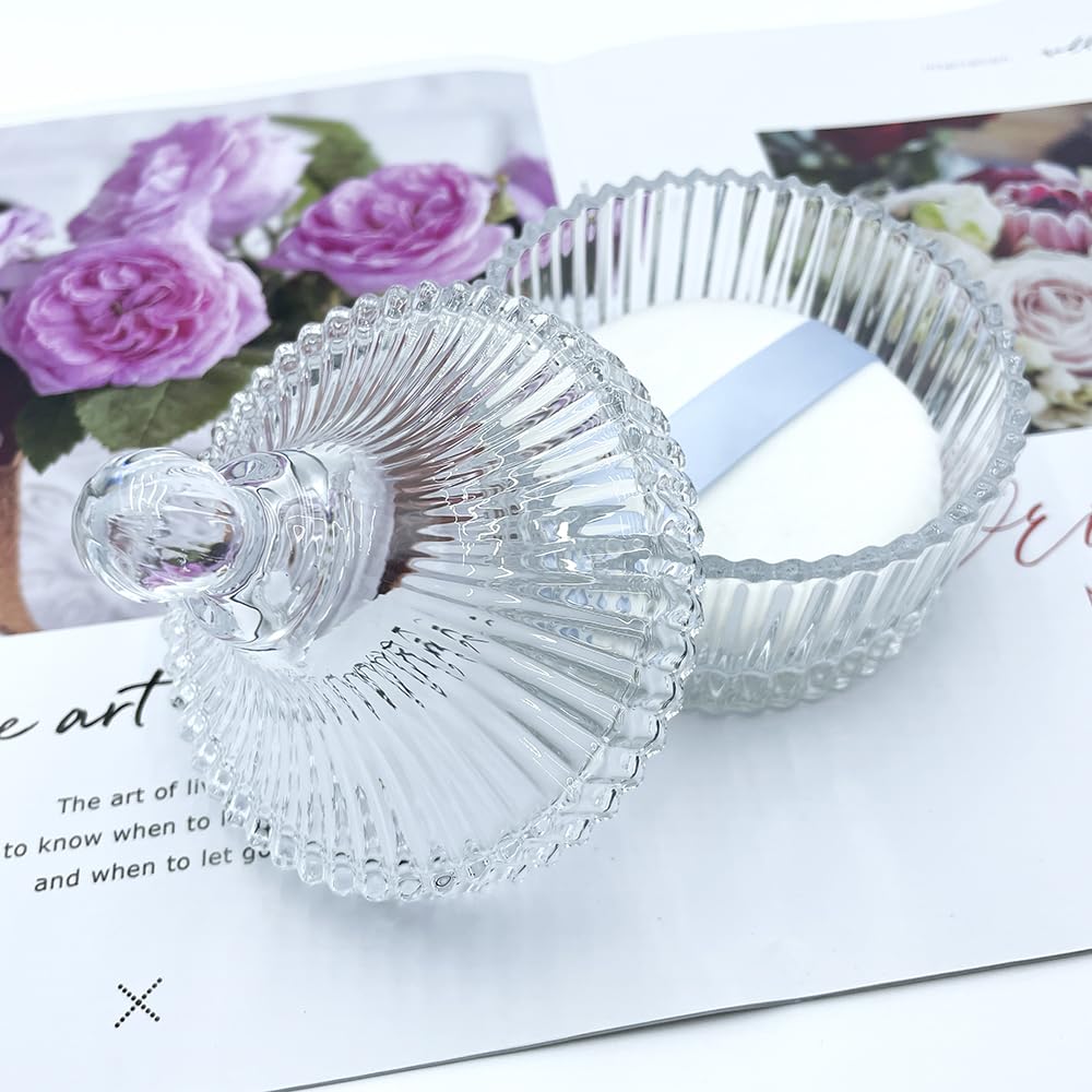 - Exquisite and elegant crystal glass container: The container is made of high-quality crystal glass, with a unique and clever design that reflects a dazzling light in the sunlight.It is not just a powder puff jar,but also a decorative artwork.It can also be used as a container for jewelry,candy,and chocolate