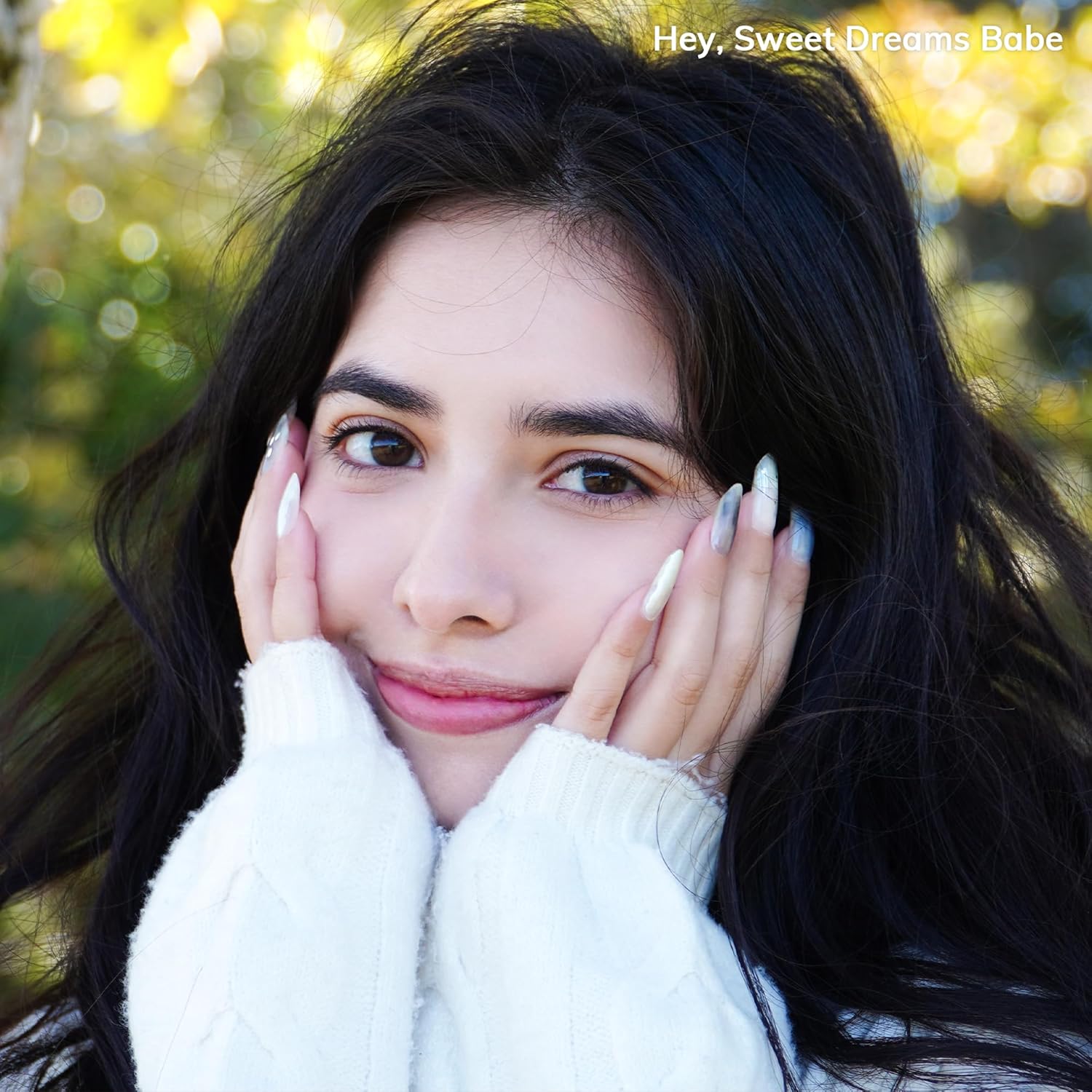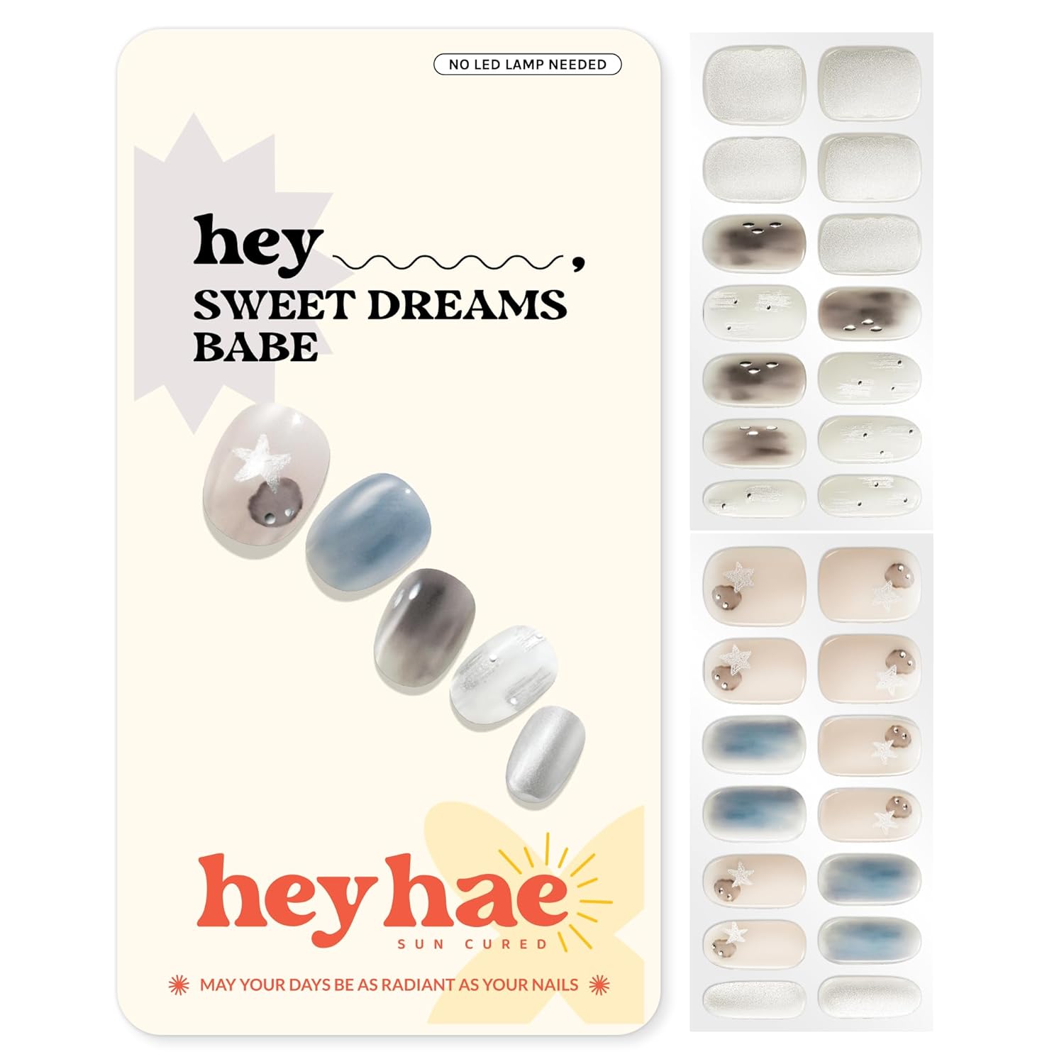 Semi Cured Gel Nail Strips | No LED Lamp Needed | Ombre, Blue, White | Easy Apply & Remove, Salon Quality | Includes 28 Strips, 1 Prep Pads, Nail File & Wooden Stick - Hey, Sweet Dreams Babe