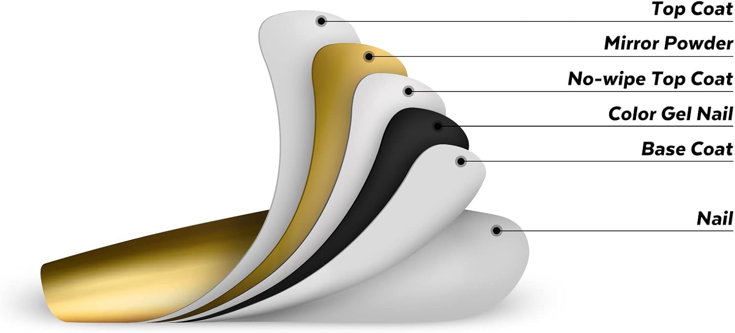 - PACKAGE CONTENTS:16 PCS chrome nail mirror pigment powders. It needs to be used with gel nail polish and no wipe top coat. They can make many different design for your gel nail polish. It gives different color base a pearly shine for your nails